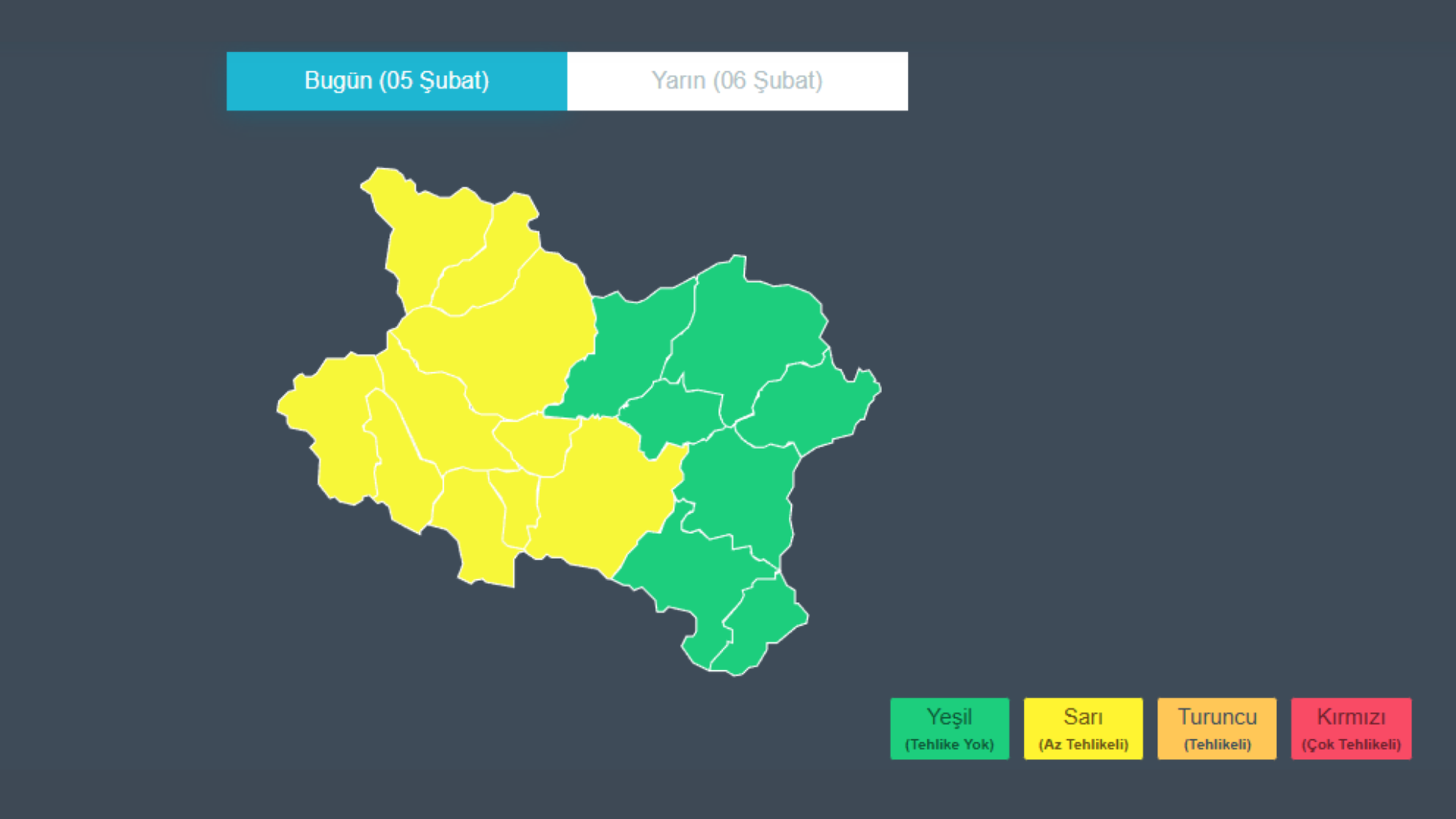 Meteoroloji Genel Müdürlüğü tarafından paylaşılan son verilere göre, Manisa ve çevresinde 05 Şubat (Bugün) tarihinde etkili olması beklenen hava koşulları nedeniyle "Sarı Kod" alarmı verildi
