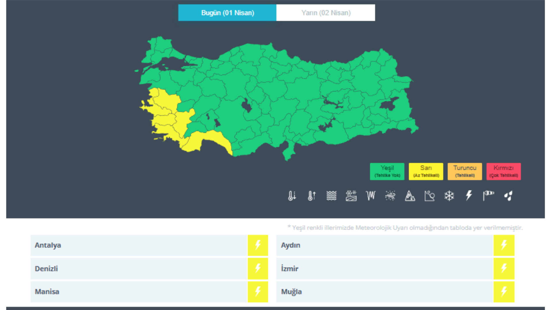 MANİSA'YA SARI KODLU UYARI (01.04.2026)