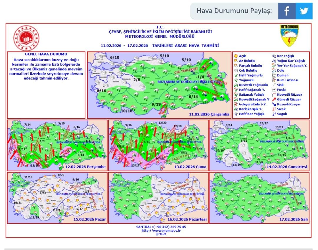 Yağışlı sistemin Cumartesi günü itibarıyla bölgeyi terk etmesiyle birlikte sıcaklıkların artması bekleniyor.