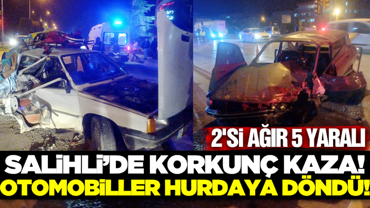 Manisa'nın Salihli ilçesinde meydana gelen trafik kazasında 2 otomobil çarpıştı. Kazada hurdaya dönen araçlarda bulunan 2'si ağır, 5 kişi yaralandı.