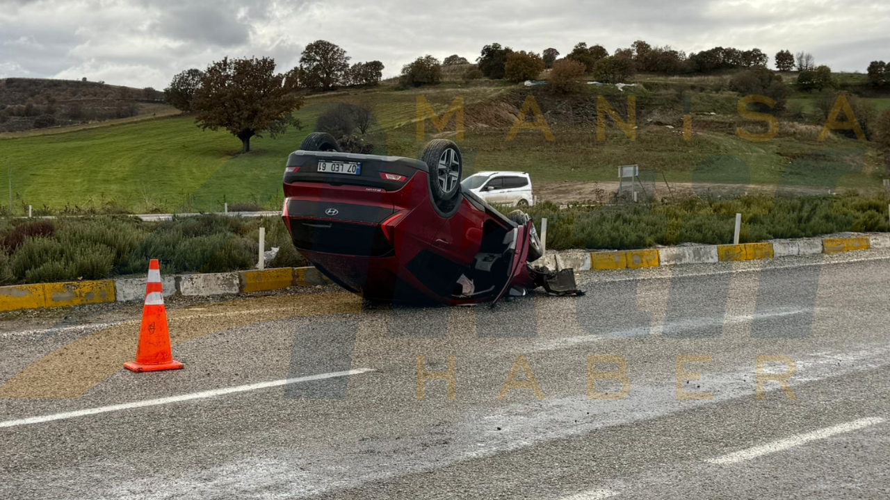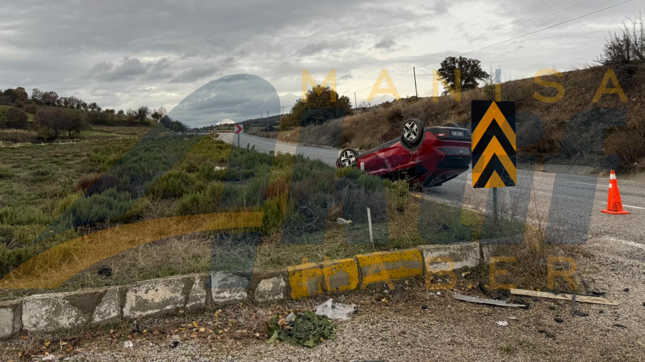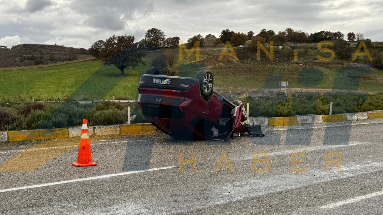 Kontrolden çıkan otomobil takla atarak yol kenarına devrildi.