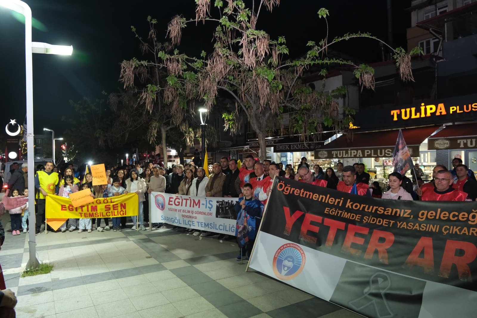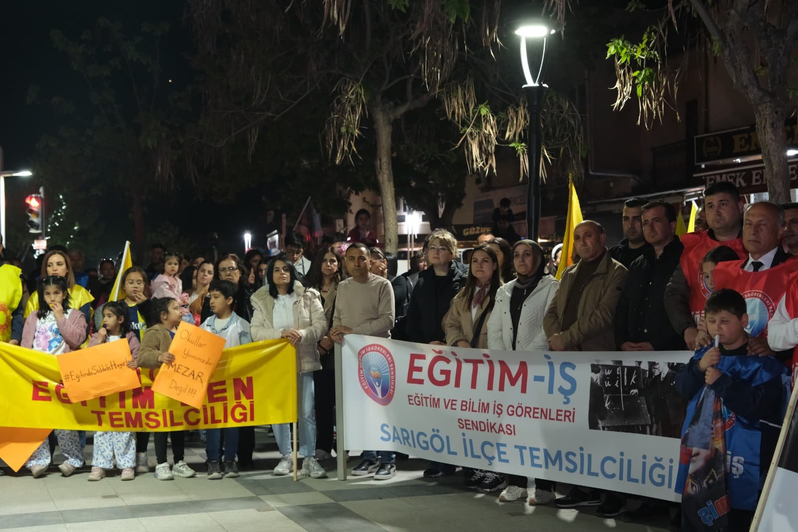 Manisa’nın Sarıgöl ilçesinde eğitim sendikaları ve vatandaşlar, Kahramanmaraş ve Şanlıurfa’da yaşanan silahlı saldırıların ardından okullarda artan şiddet olaylarına dikkat çekmek amacıyla bir yürüyüş düzenledi.