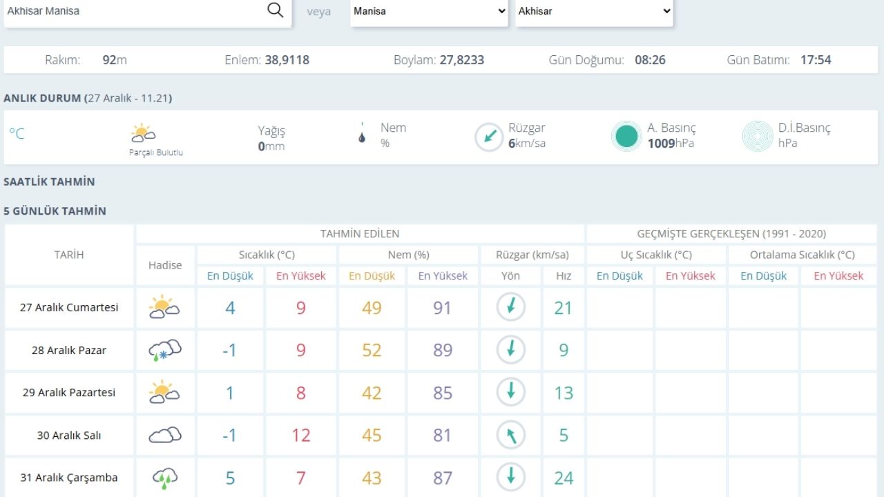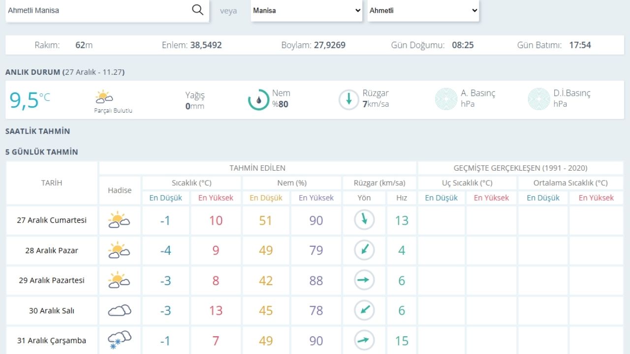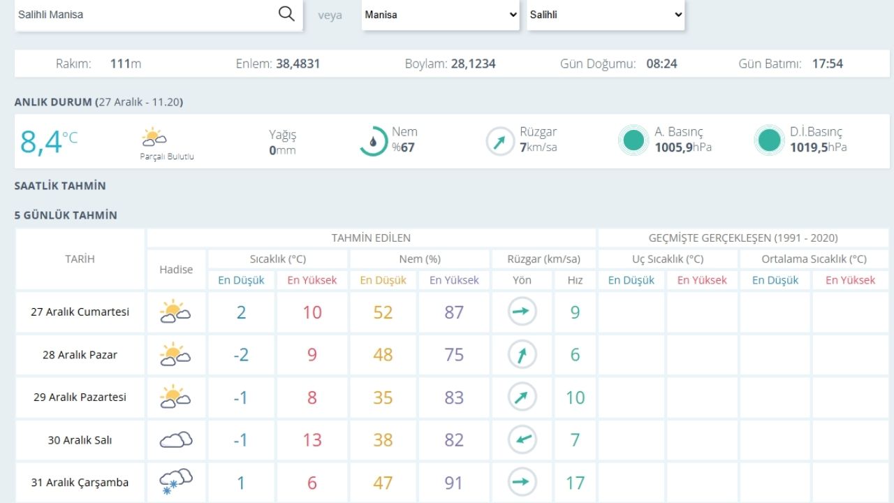 28 Aralık Pazar günü kar ile karışık yağmur ve 31 Aralık Çarşamba günü kar yağışı bekleniyor.
