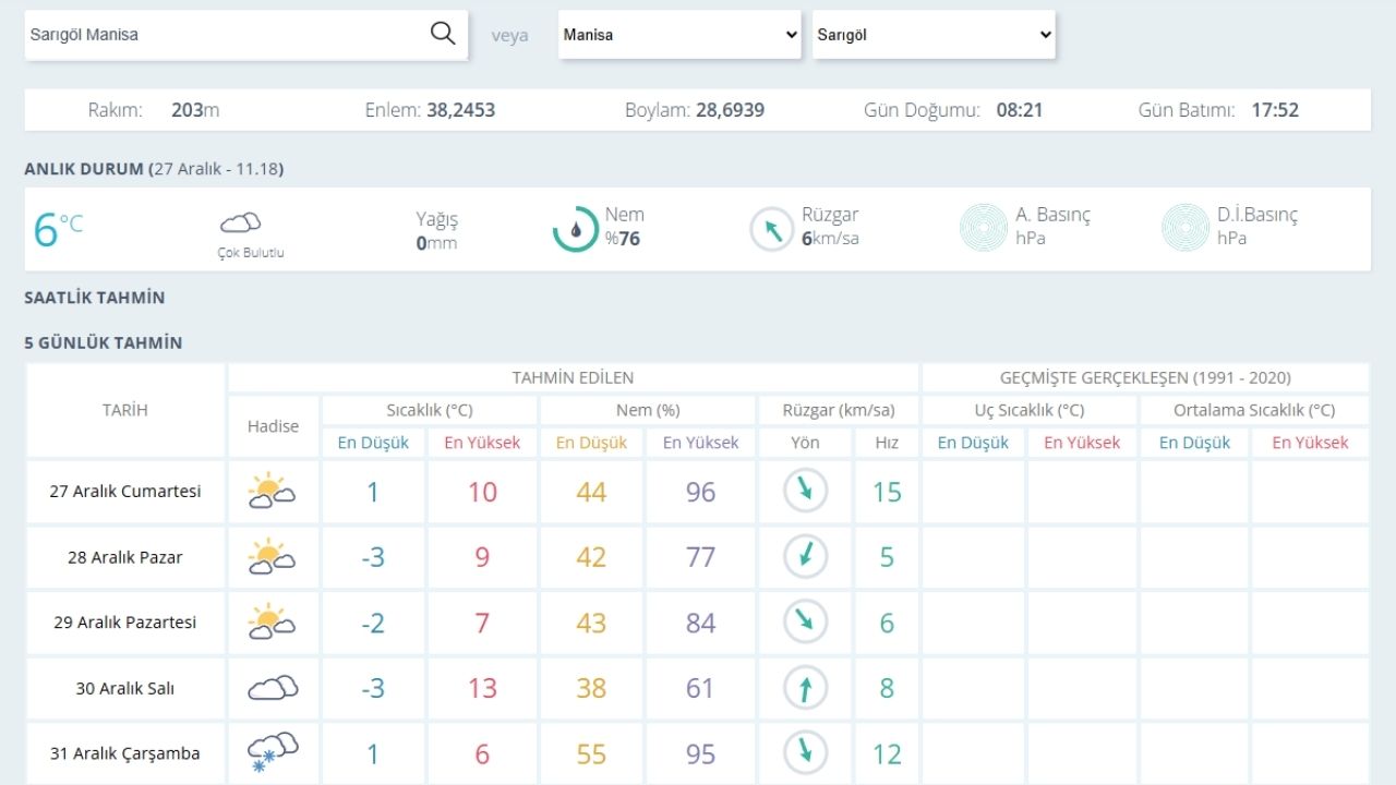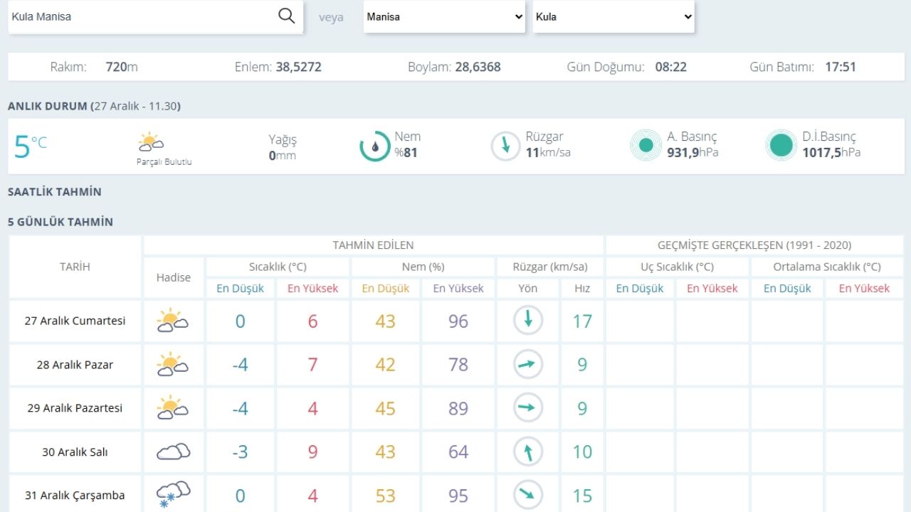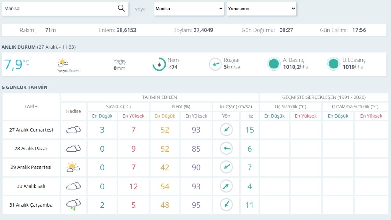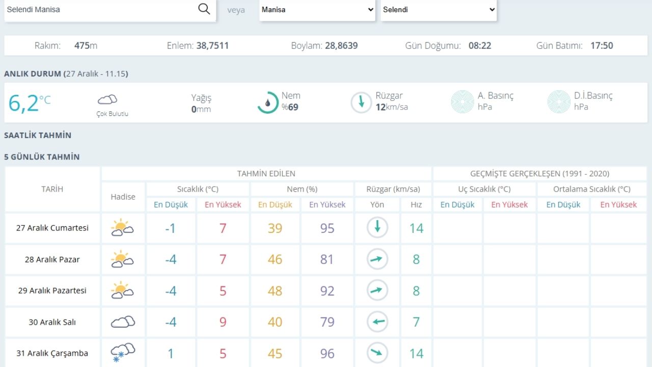 Hava sıcaklığı 0 dereceye kadar inecek fakat kar yağışı beklenmiyor.