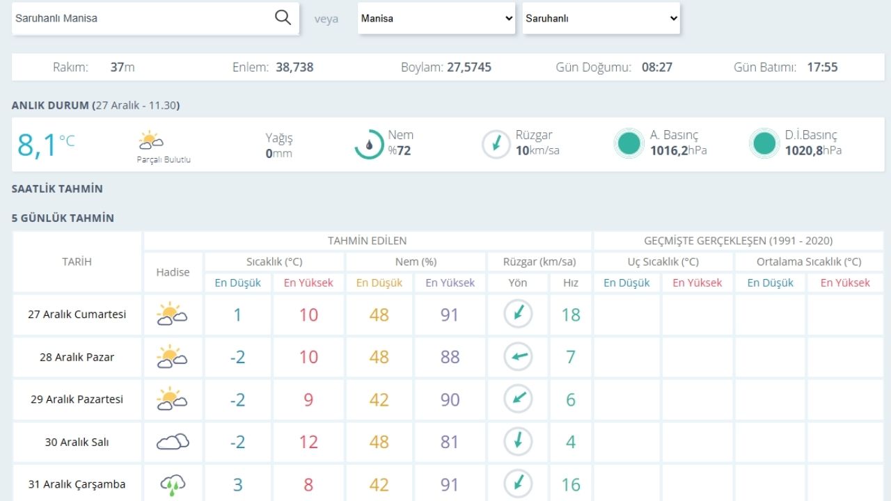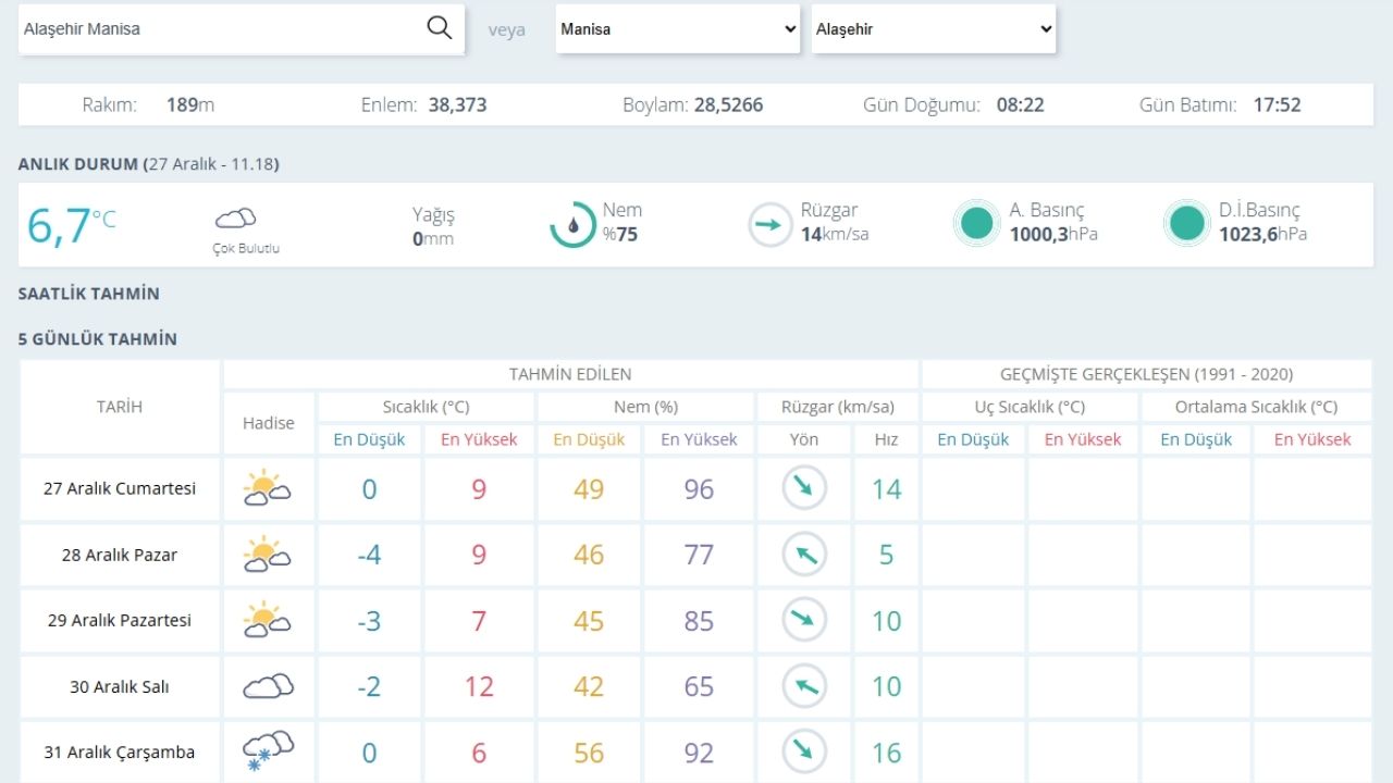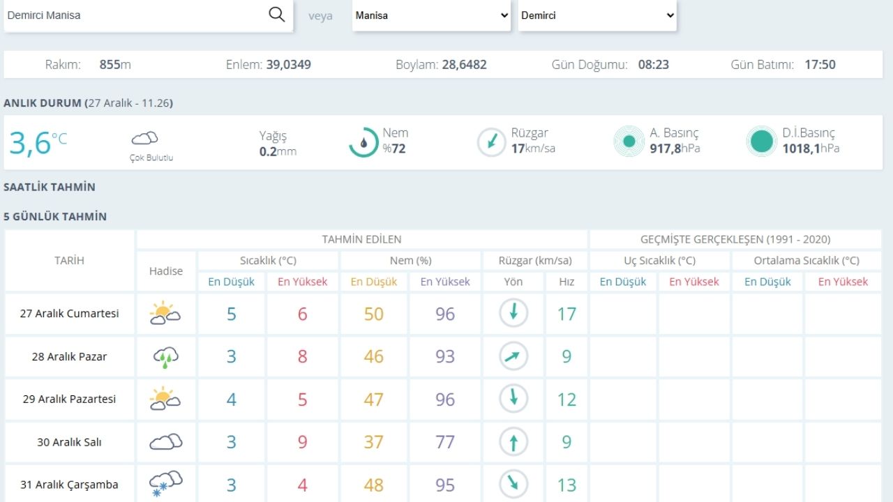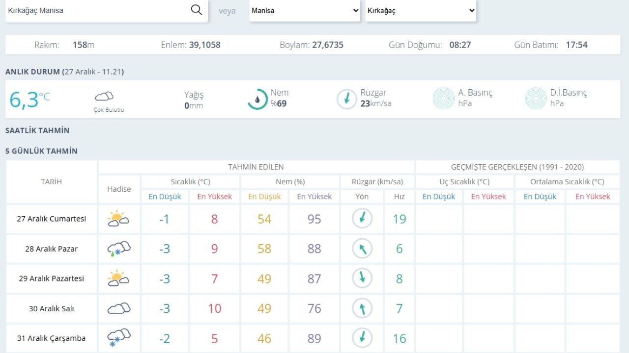 Hava sıcaklığı 0 dereceye kadar inecek fakat kar yağışı beklenmiyor.