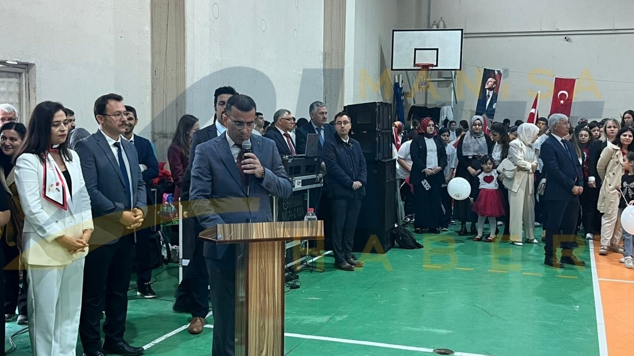 Açılış konuşmasını yapan İlçe Milli Eğitim Müdürü Cezmi Yıldırak, Türkiye Cumhuriyeti'nin en önemli dönüm noktalarından biri olan Türkiye Büyük Millet Meclisi'nin açılışının 106. yıl dönümü ve Gazi Mustafa Kemal Atatürk'ün çocuklara armağanı olan 23 Nisan Ulusal Egemenlik ve Çocuk Bayramını kutladı.