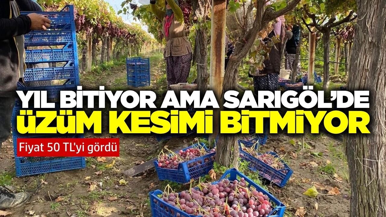 Sarıgöl'de Temmuz ayında erkenci üzüm çeşitleriyle başlayan hasat süreci, Sultaniye ve çekirdekli sofralık üzümlerin kesimleriyle Aralık ayı olmasına rağmen halen devam ediyor.