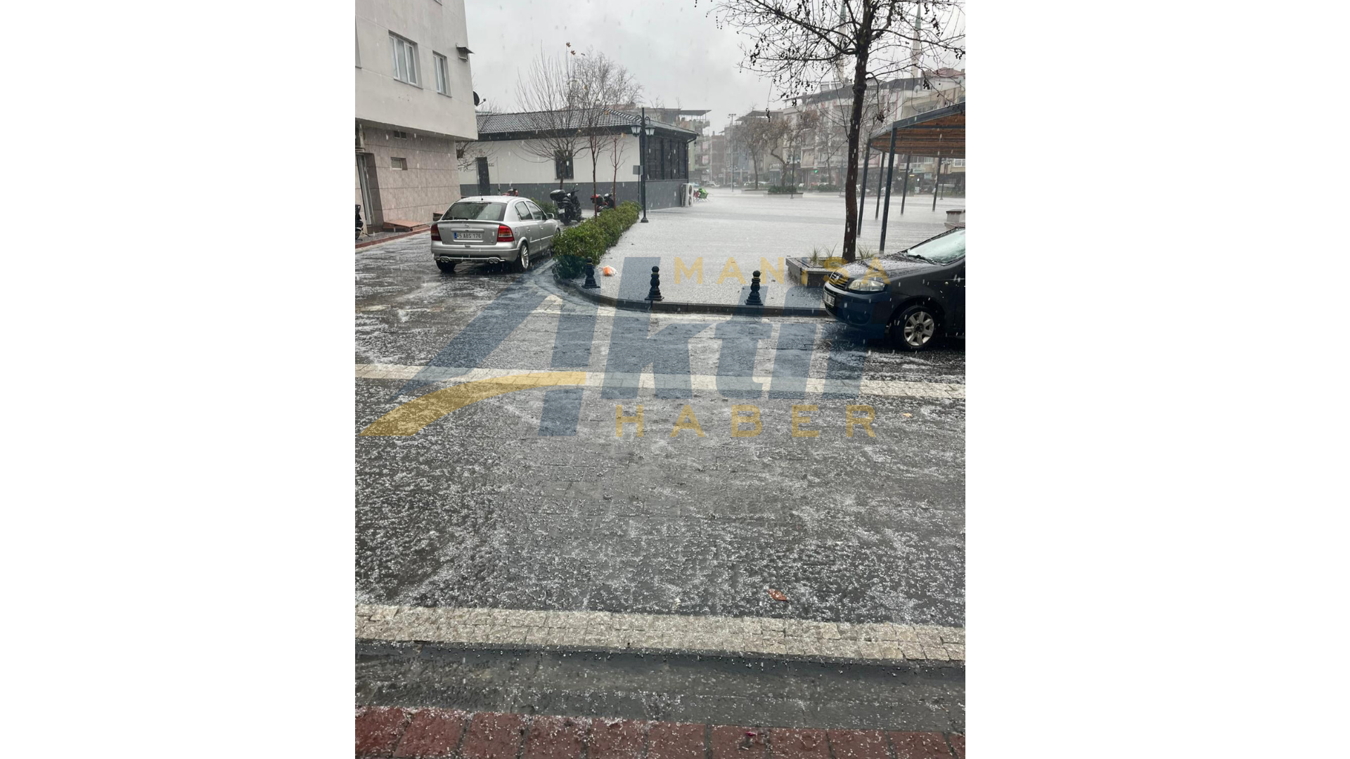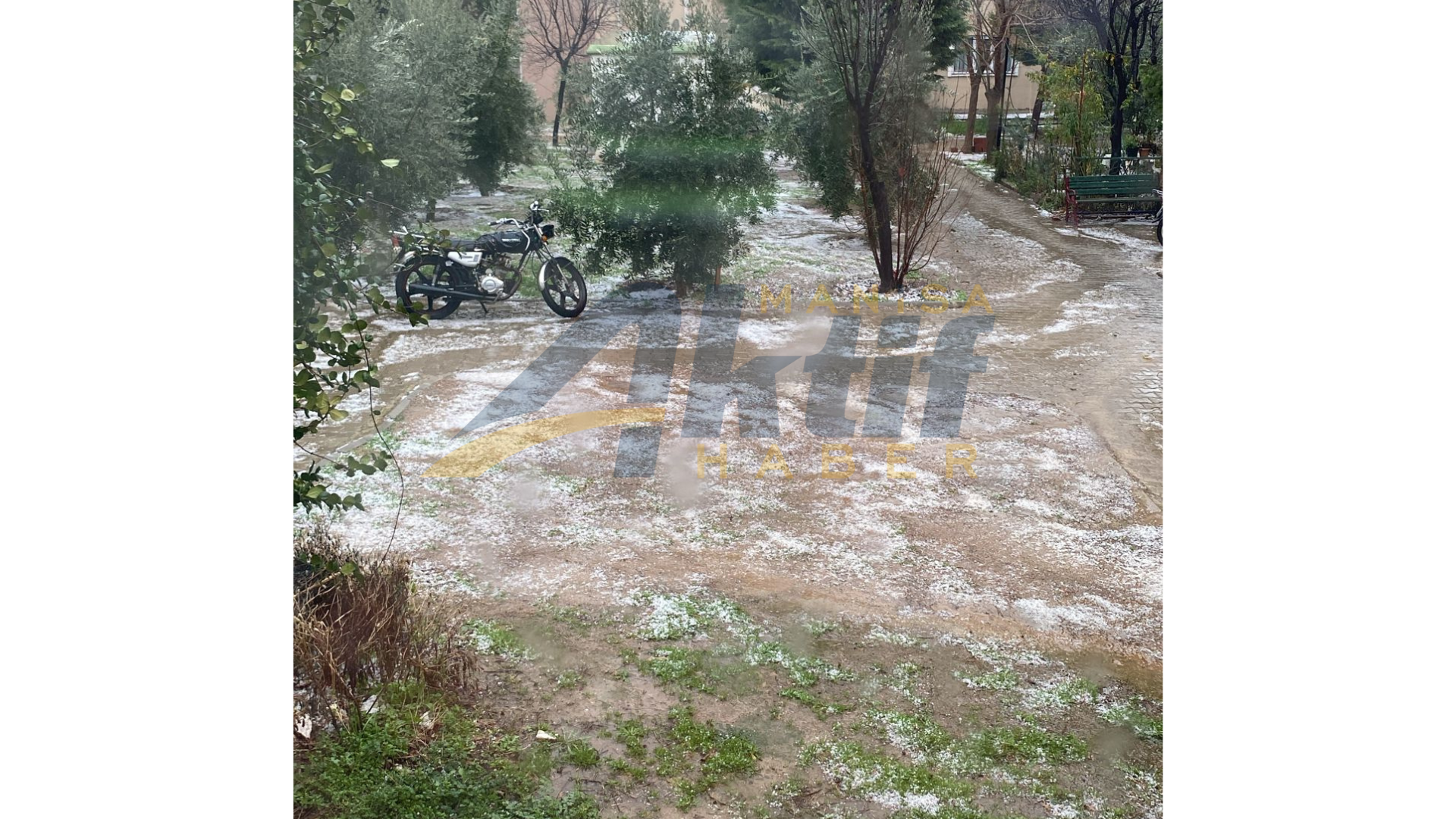 Sarıgöl'de aniden bastıran şiddetli dolu yağışı tarım arazileri ve sokakları beyaza bürüdü.