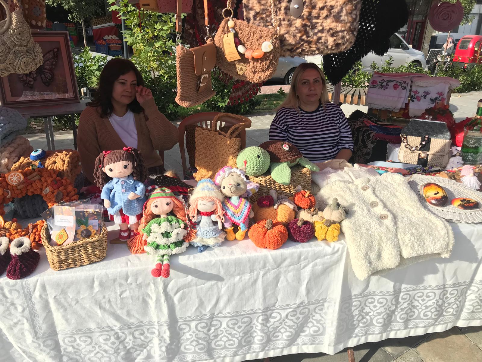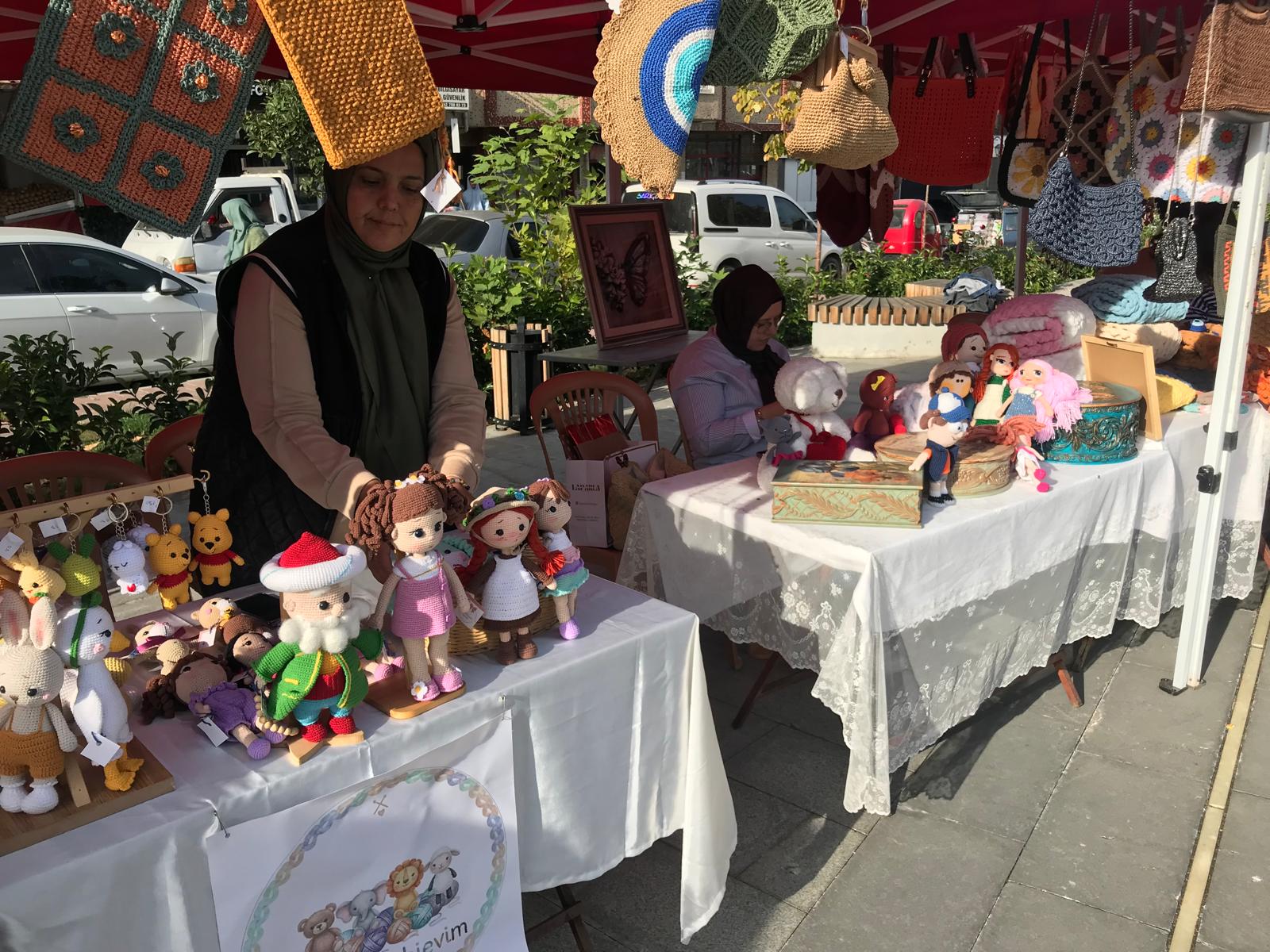 Onlarca girişimci kadın, ilçede stant açarak emeklerini sergiledi. Özenle hazırlanmış örgü ürünler, takılar, geleneksel el sanatları ve tekstili ürünler de dikkat çekti.