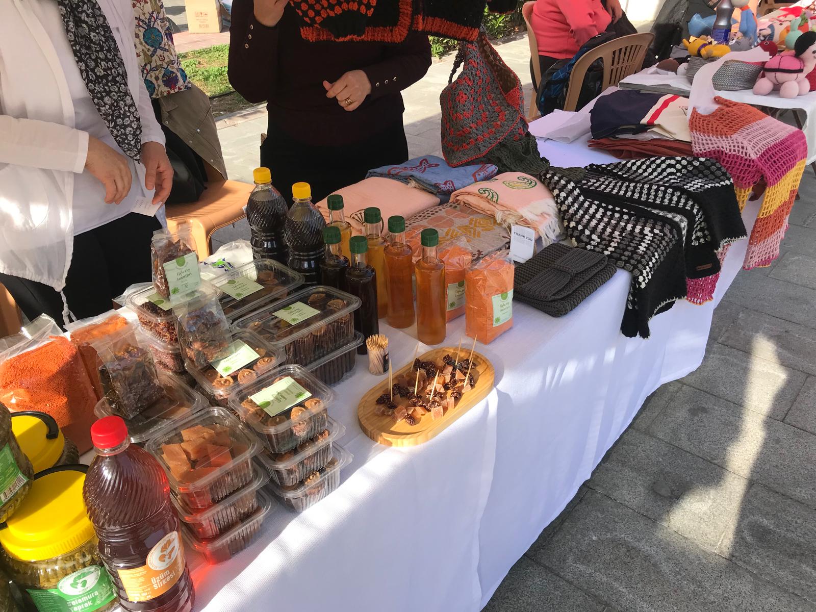 Öte yandan bölgenin kendine has lezzetlerinden oluşan ev yapımı reçeller, salçalar, kuru gıdalar, tatlı ve tuzlu hamur işleri ziyaretçilere sunuldu.