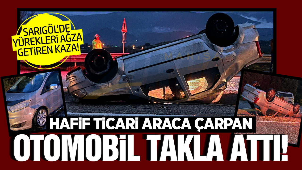Çarpışmanın şiddetiyle savrulan otomobil takla atarak ters döndü.