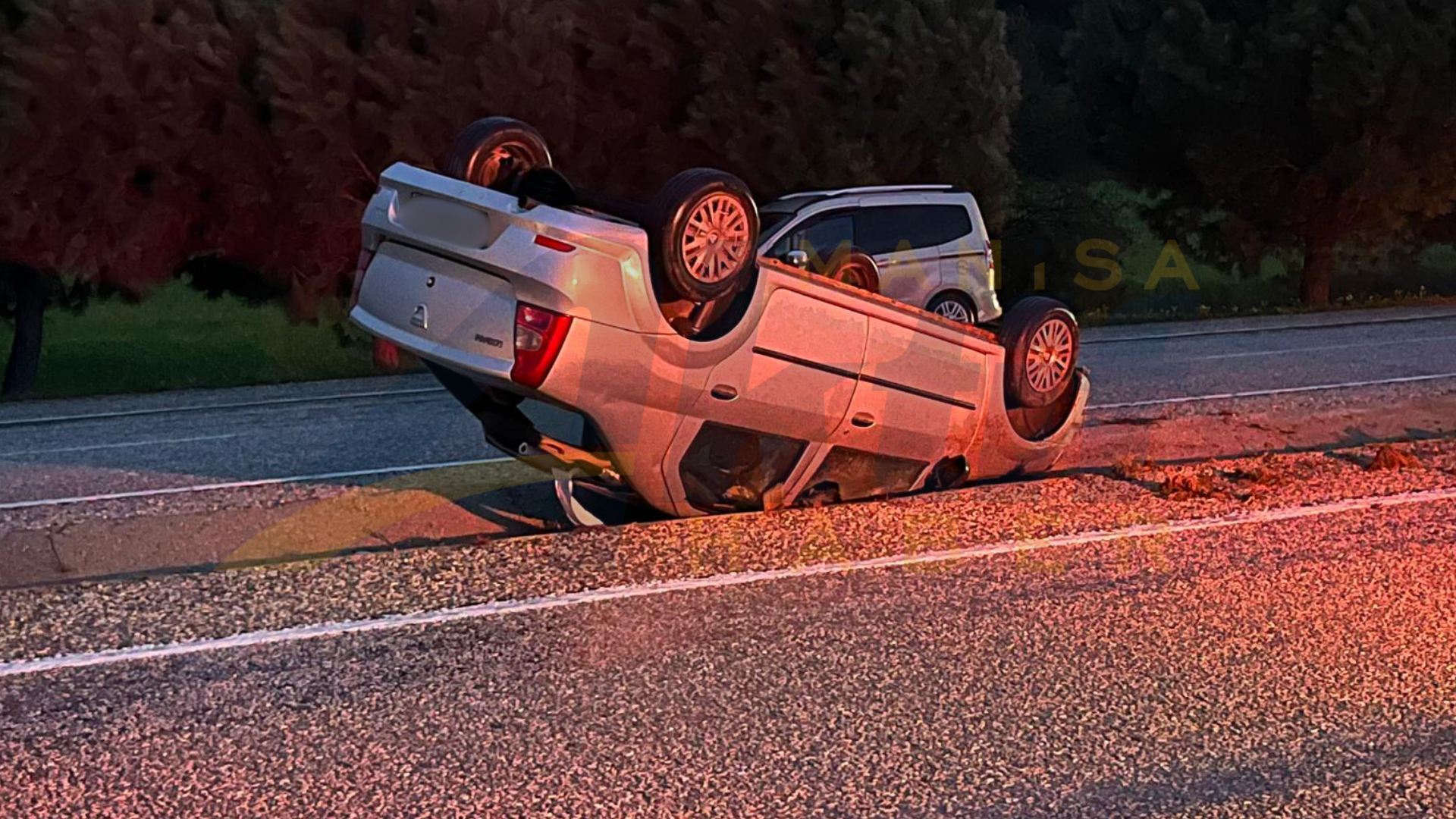 Edinilen bilgilere göre, B.A. (31) idaresindeki 45 SB XXXX plakalı otomobil, kavşak üzerinde sürücüsünün direksiyon hakimiyetini kaybetmesi sonucu kontrolden çıktı.