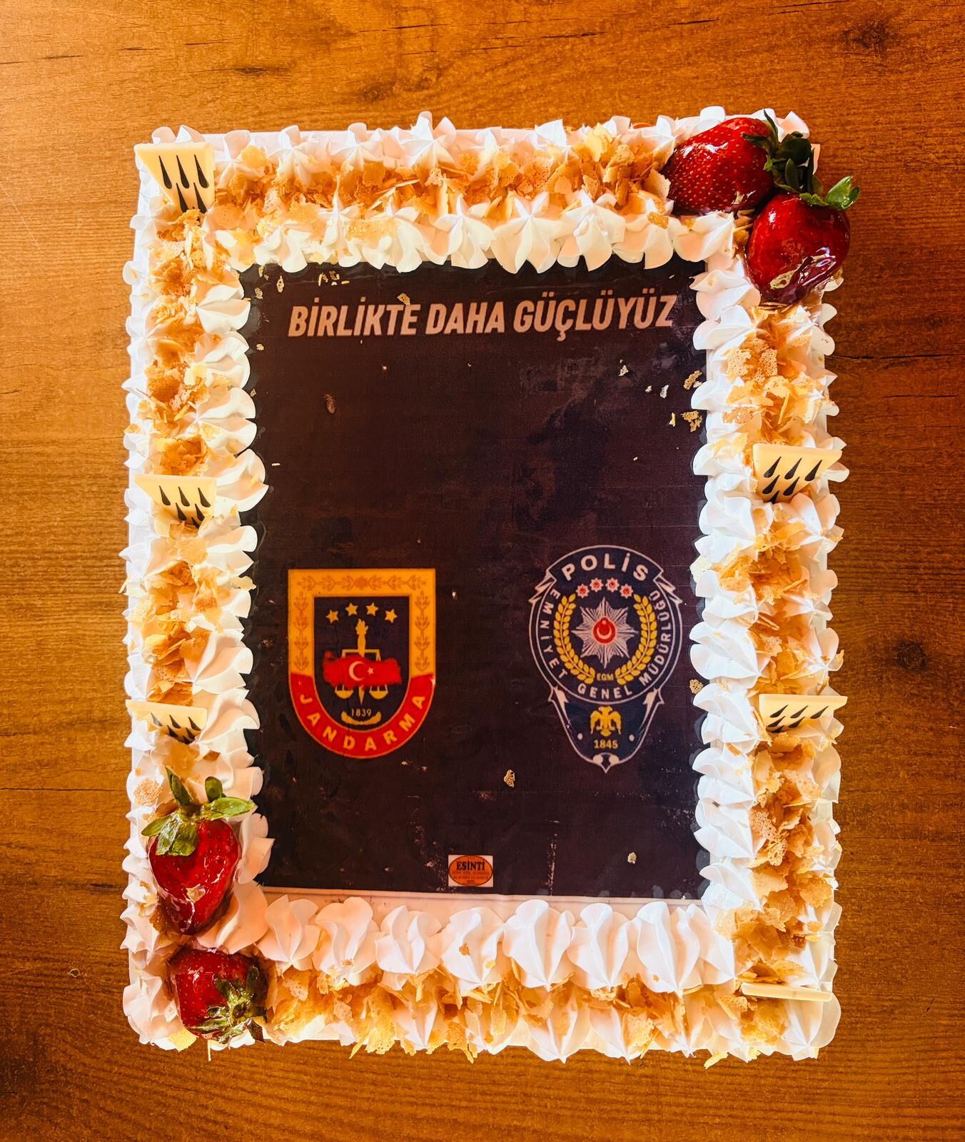 Ziyaret sırasında jandarma ekipleri, üzerinde Jandarma ve Polis Teşkilatlarının amblemlerinin yer aldığı ve “Birlikte Daha Güçlüyüz” yazılı özel bir pasta takdim etti.