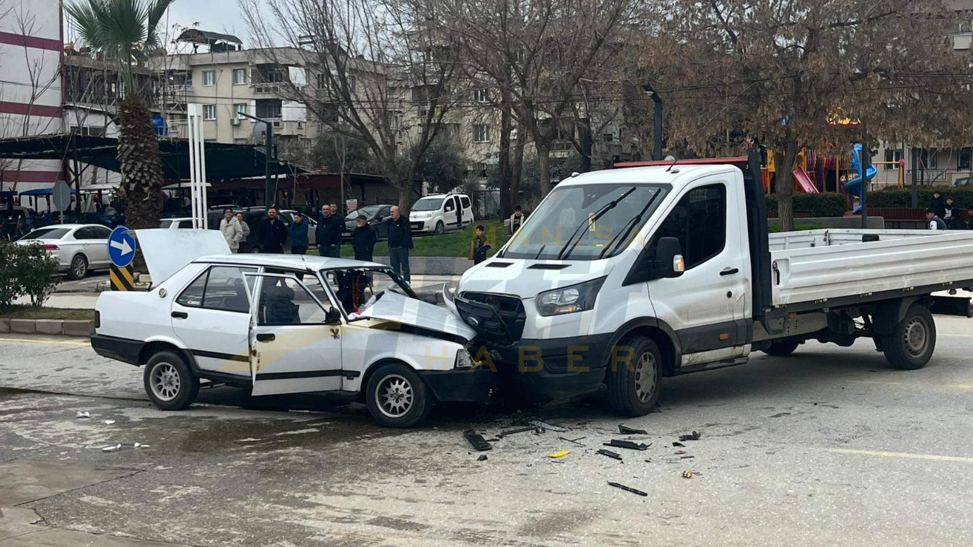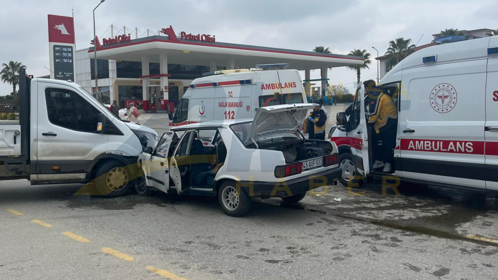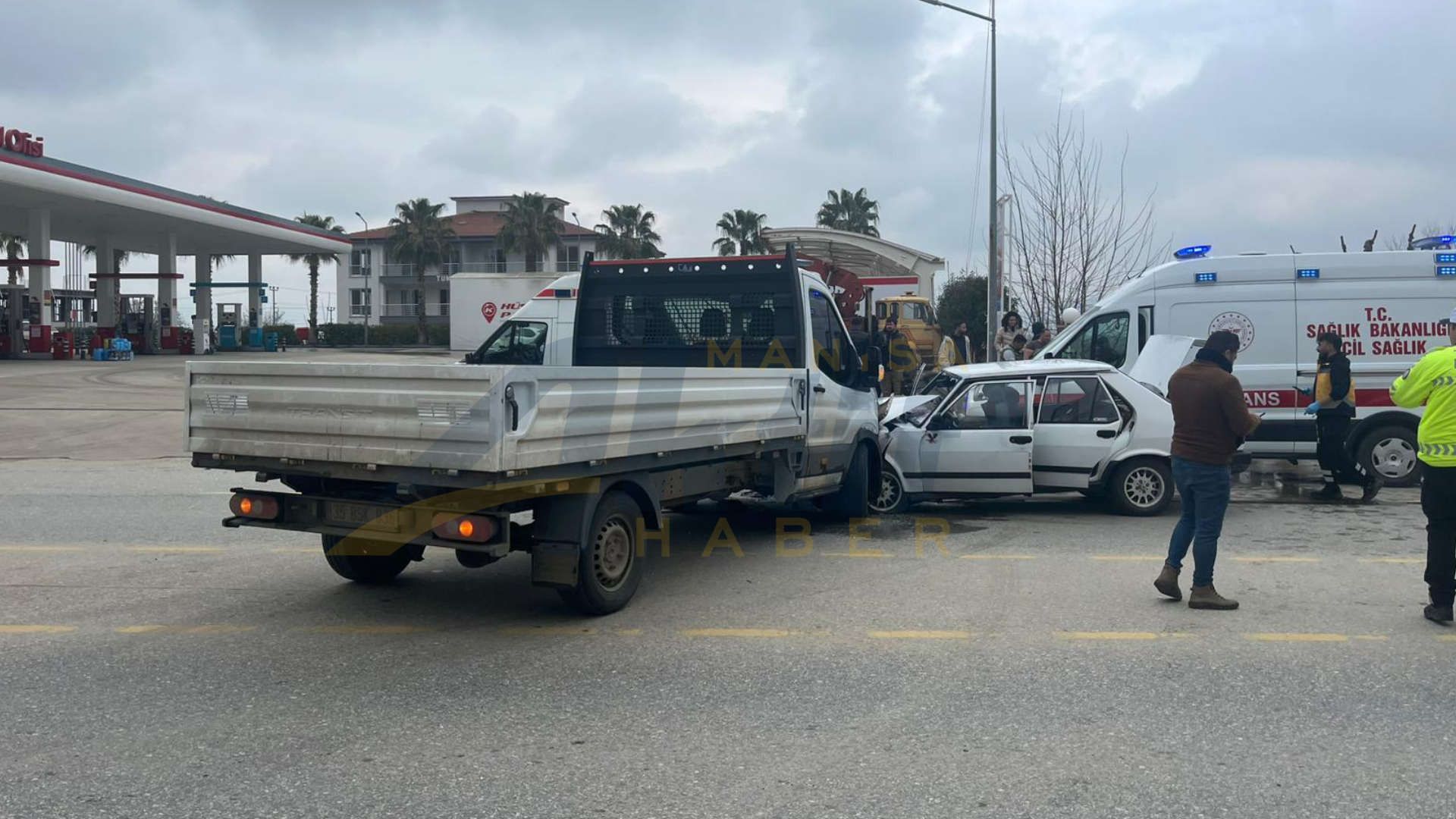 Alınan bilgilere göre, Alaşehir istikametine seyir halinde olan E.D. yönetimindeki 45 AUF 933 plakalı otomobil, o sırada akaryakıt istasyonuna dönüş yapmakta olan S.T. (46) idaresindeki 35 BSK 836 plakalı hafif ticari araçla kafa kafaya çarpıştı.