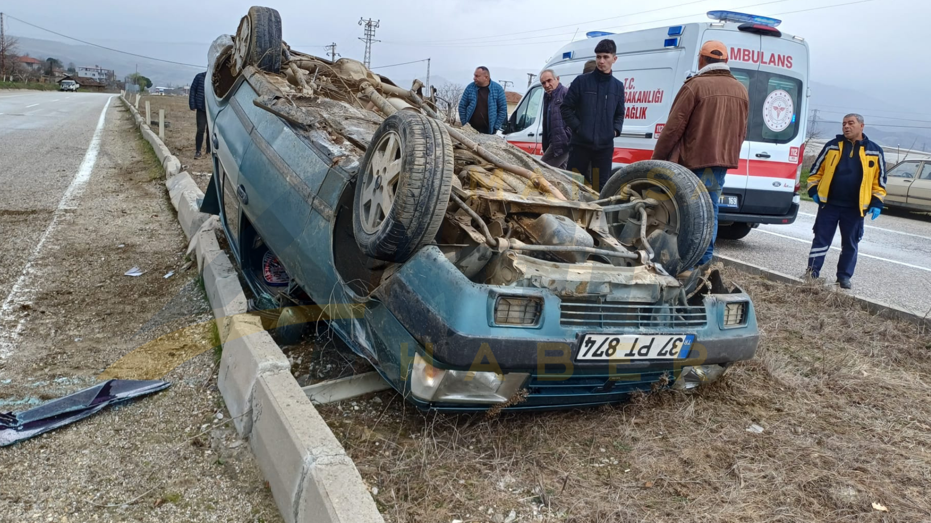 Savrulan otomobil, yol ortasındaki refüje çarptıktan sonra takla atarak durabildi.
