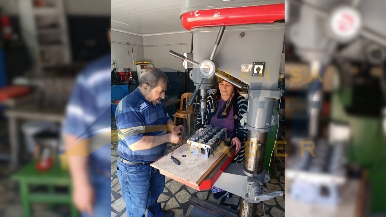 Bodrum ve Milas’tan Sarıgöl Eski Sanayi’ye gelen İbrahim Çevik, eşi Neriman Hanım ile birlikte yeni atölyesini hizmete açtı. Atölyede silindir kapağı revizyonu ve taşlama tamirat işleri gerçekleştiren çift, işbirliği içinde çalışarak esnafın ihtiyaçlarına hızlı çözüm sunmayı hedefliyor.