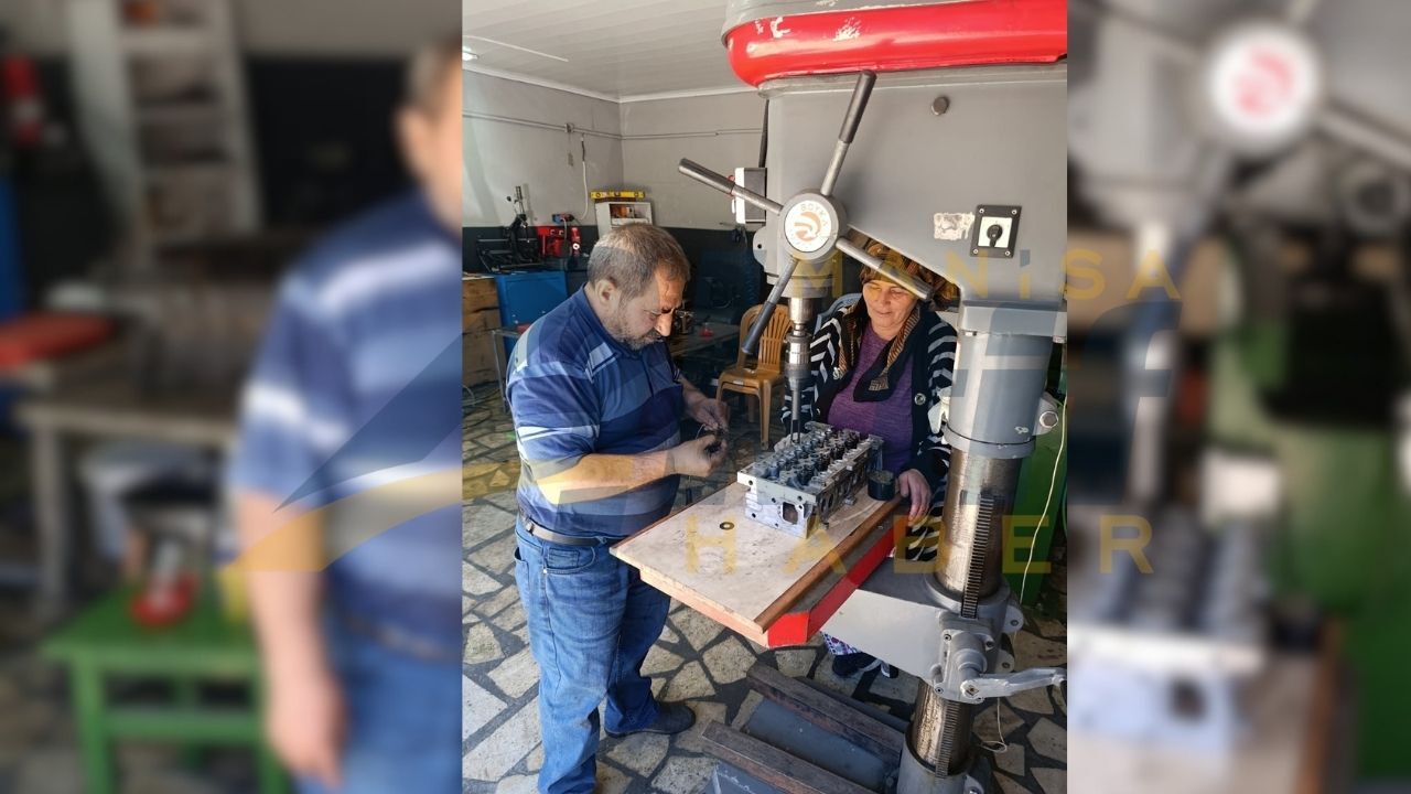 İbrahim Çevik, silindir kapağı revizyon ve taşlama işlemini gerçekleştiriyor. “Her işin başı dikkat ve titizlik” diyor.