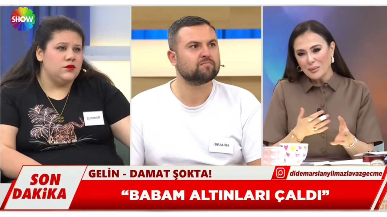 Yeni evlenen Sarıgöllü çift İbrahim Budak (29) ve Sudenur Budak (19) düğünlerinde takılan altın ve paraların Sudenur’un babası tarafından kendilerine verilmediği iddiasıyla Didem Arslan Yılmaz ile Vazgeçme programına katıldı.
