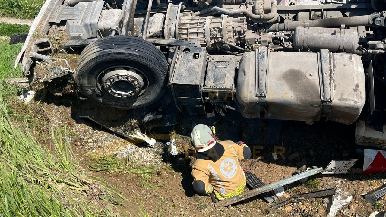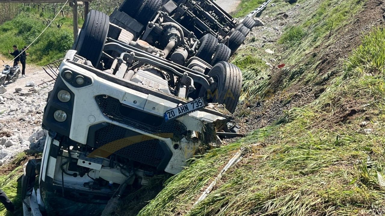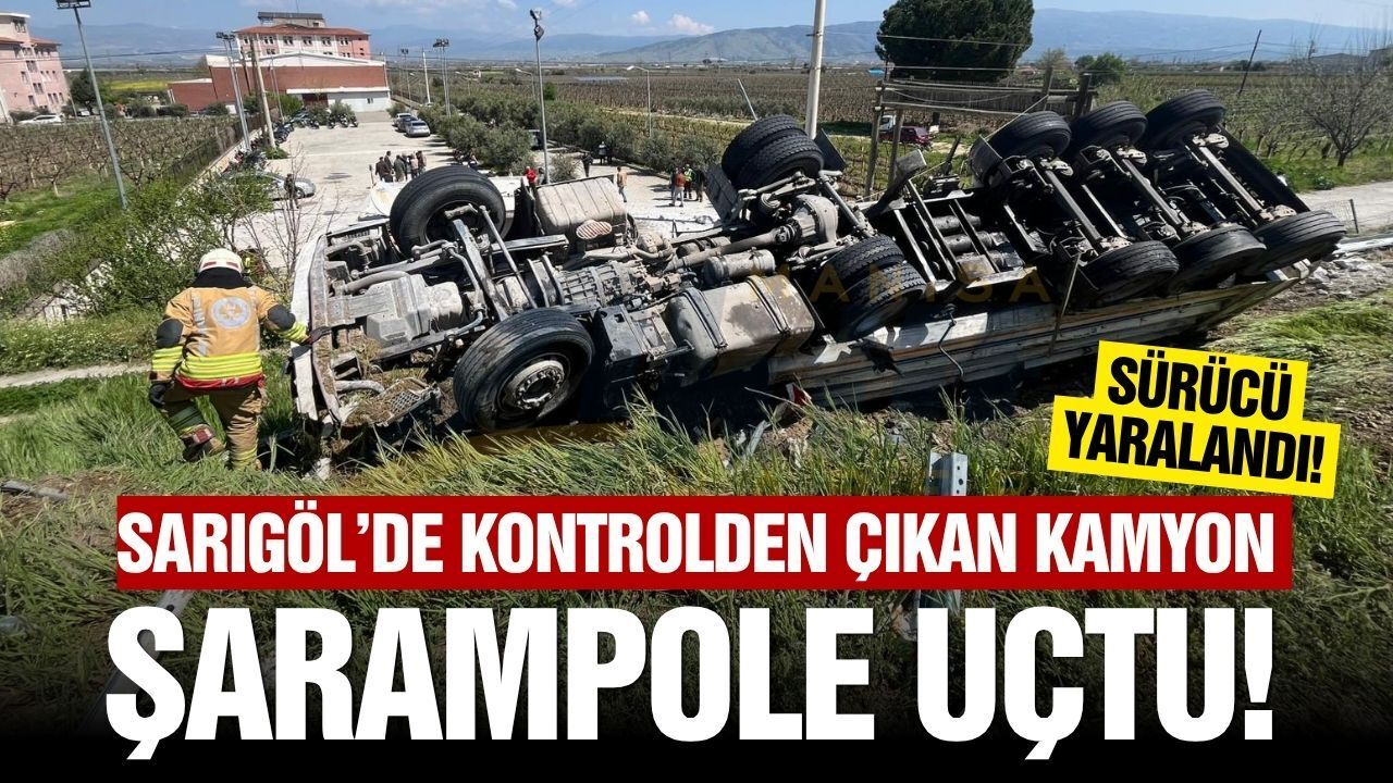 Edinilen bilgilere göre, Denizli istikametinden Alaşehir istikametine doğru seyir halinde olan Y.E. (43) idaresindeki 20 AHN 735 plakalı moloz yüklü kamyon, Sarıgöl ilçe girişinde sürücüsünün direksiyon hakimiyetini kaybetmesi sonucu kontrolden çıkarak şarampole devrildi.