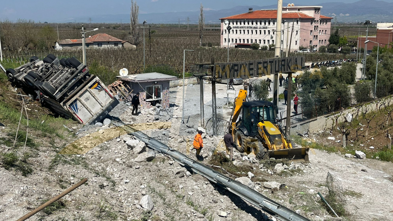 Öte yandan şarampole devrilen kamyondan dökülen molozlar, Hayriye Ertürk Anadolu Lisesi’nin duvarlarında ve okul içerisindeki park halindeki bir otomobile de çarparak maddi hasara yol açtı.