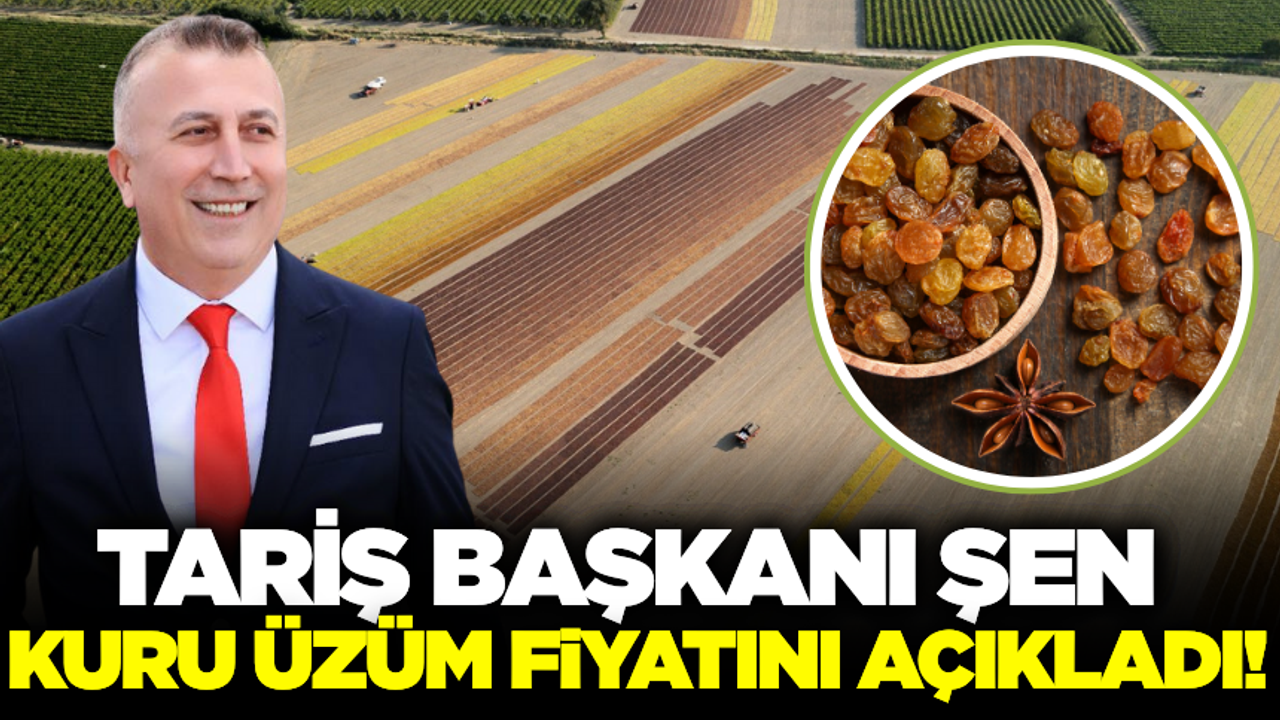 Tariş Üzüm Birliği Başkanı Ferhat Şen, 2025 ürünü 9 numara çekirdeksiz kuru üzüm için alım avans fiyatını kilogram başına 120 TL olarak duyurdu.
