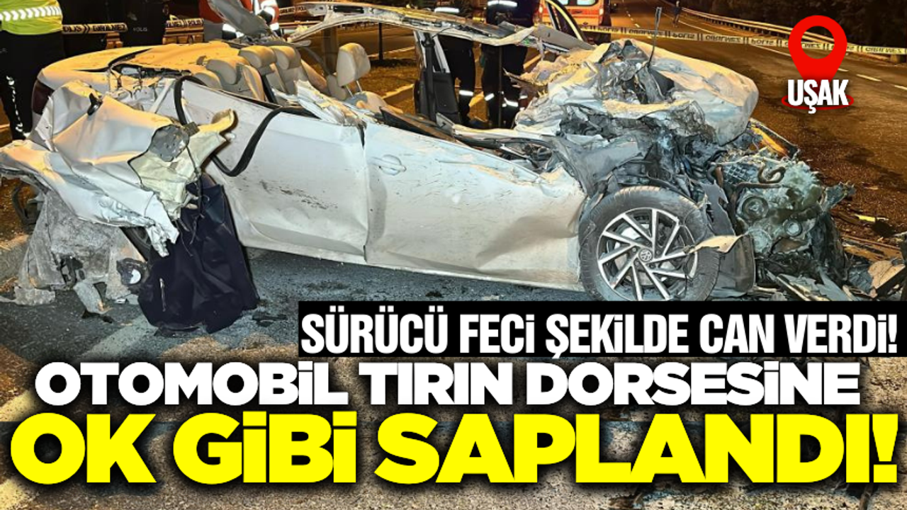 Uşak'ta otomobilin tıra arkadan çarpması sonucu hurdaya dönen otomobil sürücüsü hayatını kaybetti.