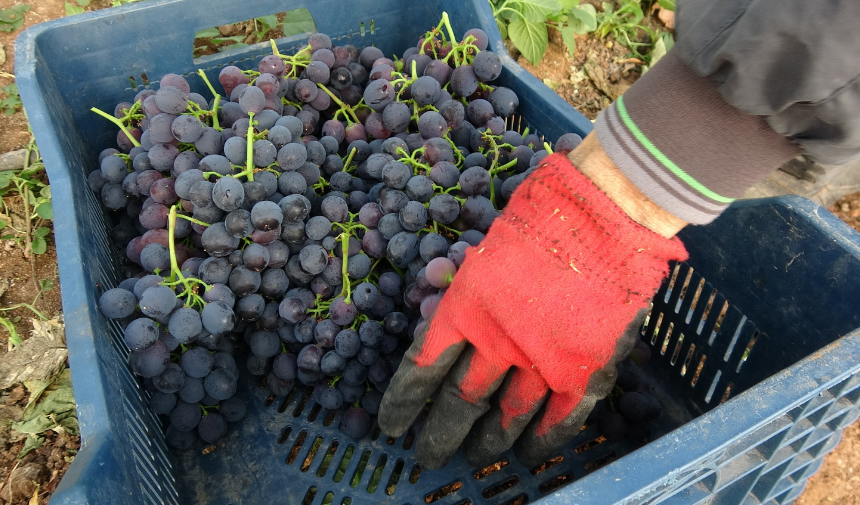 Geçtiğimiz haftalarda beyaz üzümde hasada başlanan Mersin Erdemli'de bugünde kara üzümlerin toplanması başladı.