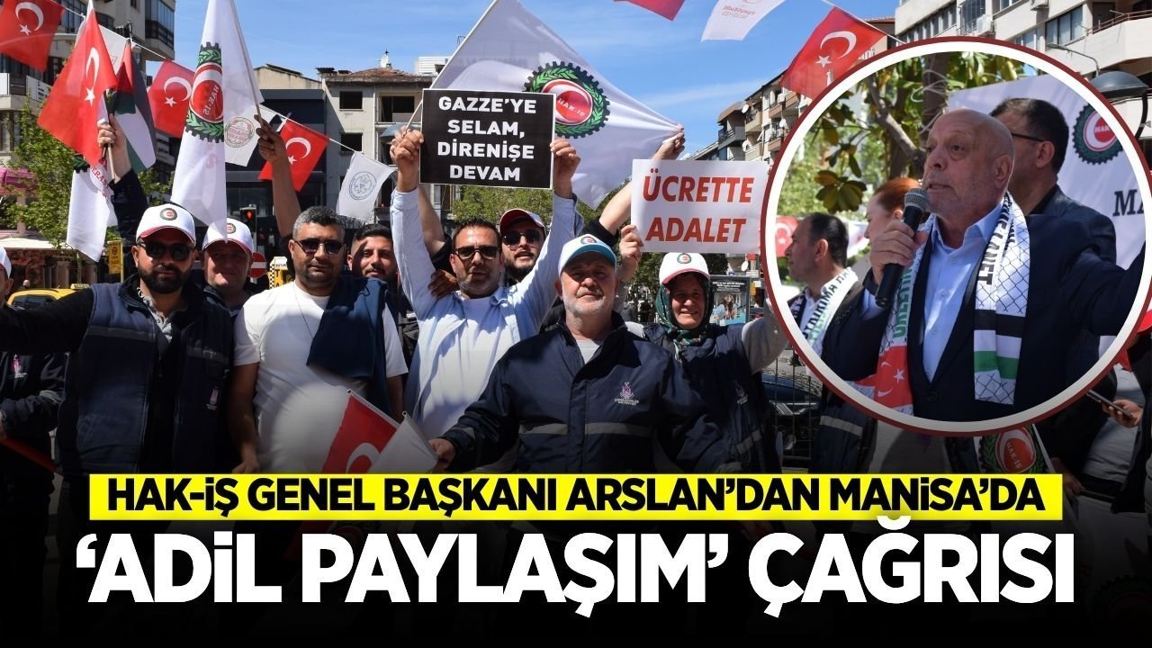 Manisa’nın Şehzadeler ilçesindeki 15 Temmuz Demokrasi Meydanı’nda 1 Mayıs Emek ve Dayanışma Günü kapsamında düzenlenen programda sendika üyeleri ve vatandaşlara hitap eden HAK-İŞ Genel Başkanı Mahmut Arslan, 1 Mayıs’ın yalnızca bir günle sınırlı bir etkinlik olarak görülmediğini, Türkiye genelinde yürütülen programlarla geniş bir sürece yayıldığını söyledi.