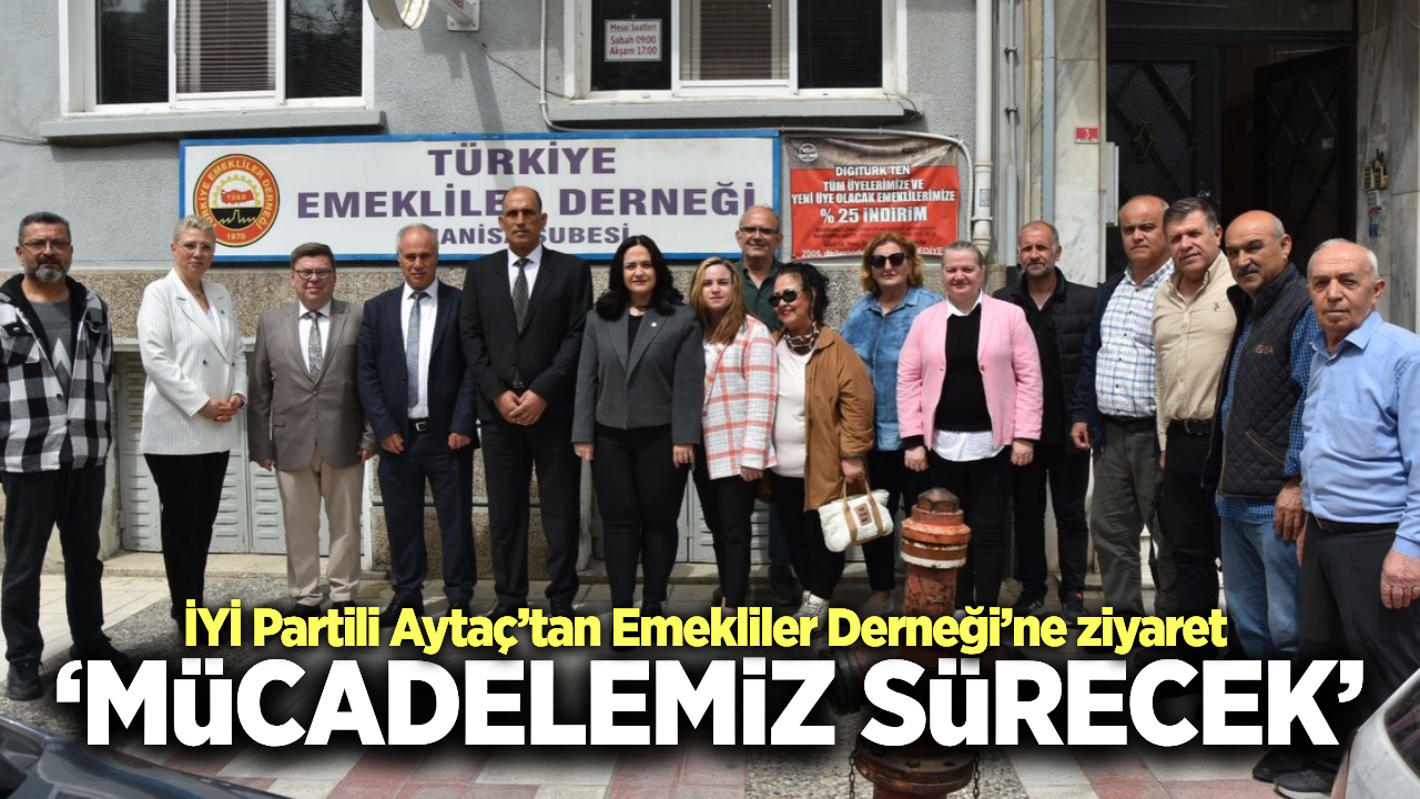 İYİ Parti Şehzadeler İlçe Başkanı Gözde Akçakın Aytaç, beraberindeki heyetle birlikte Türkiye Emekliler Derneği (TÜED) Manisa Şubesi’ni ziyaret etti. Yeni seçilen Şube Başkanı Nafiz Gündüz ve yönetim kuruluna hayırlı olsun ziyaretinde bulunan Aytaç, emeklilerin yaşadığı ekonomik sıkıntıları gündeme taşıdı.