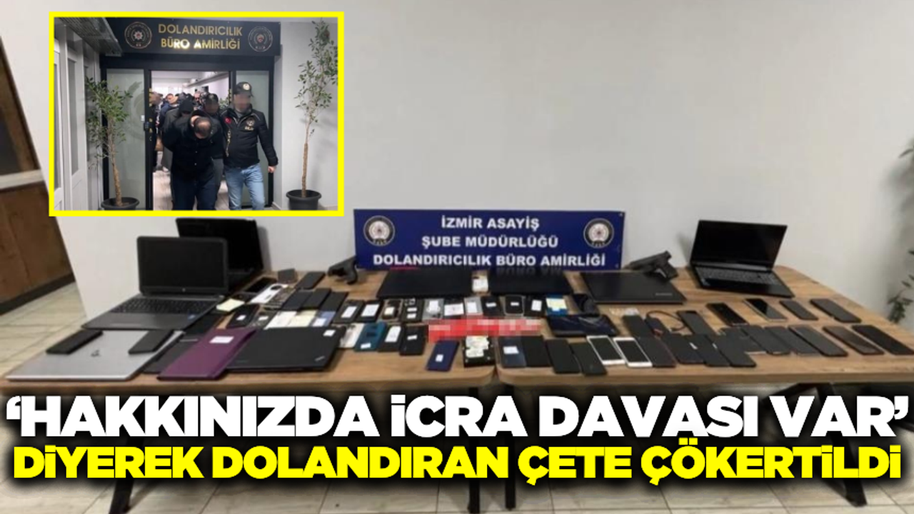 İzmir Cumhuriyet Başsavcılığı koordinesinde, Asayiş Şube Müdürlüğü Dolandırıcılık, Teknik Takip ve SAM Büro Amirliği ekiplerince 2024 yılı içerisinde ülke genelindeki 123 vatandaşımızı telefonla arayarak kendilerini uzlaştırmacı avukat ve icra memuru olarak tanıtıp "hakkınızda icra davası var" diyerek uzlaştırma ücreti adı altında 10 Milyon TL'den fazla dolandırdığı tespit edilen liderliğini C.A'nın yaptığı suç örgütüne yönelik yapılan uzun süreli teknik ve fiziki çalışmalar sonucu 101 şüpheli tespit edildi.