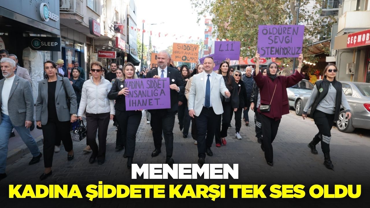 25 Kasım Kadına Yönelik Şiddete Karşı Uluslararası Mücadele Günü, Menemen'de düzenlenen yürüyüş ve ardından gerçekleşen bilgilendirme toplantısıyla, güçlü bir mesaja dönüştü. Menemen Kadın Danışma Merkezi önünden başlayan yürüyüşe, Menemenli kadınlar ve erkekler tek ses olarak bir arada katıldı. Eşi Filiz Pehlivan ile birlikte yürüyüşe katılan Menemen Belediye Başkanı Aydın Pehlivan, "Öldüren sevgi istemiyoruz." ve "Kadına şiddet, insanlığa ihanet" yazan dövizleri taşıdı.