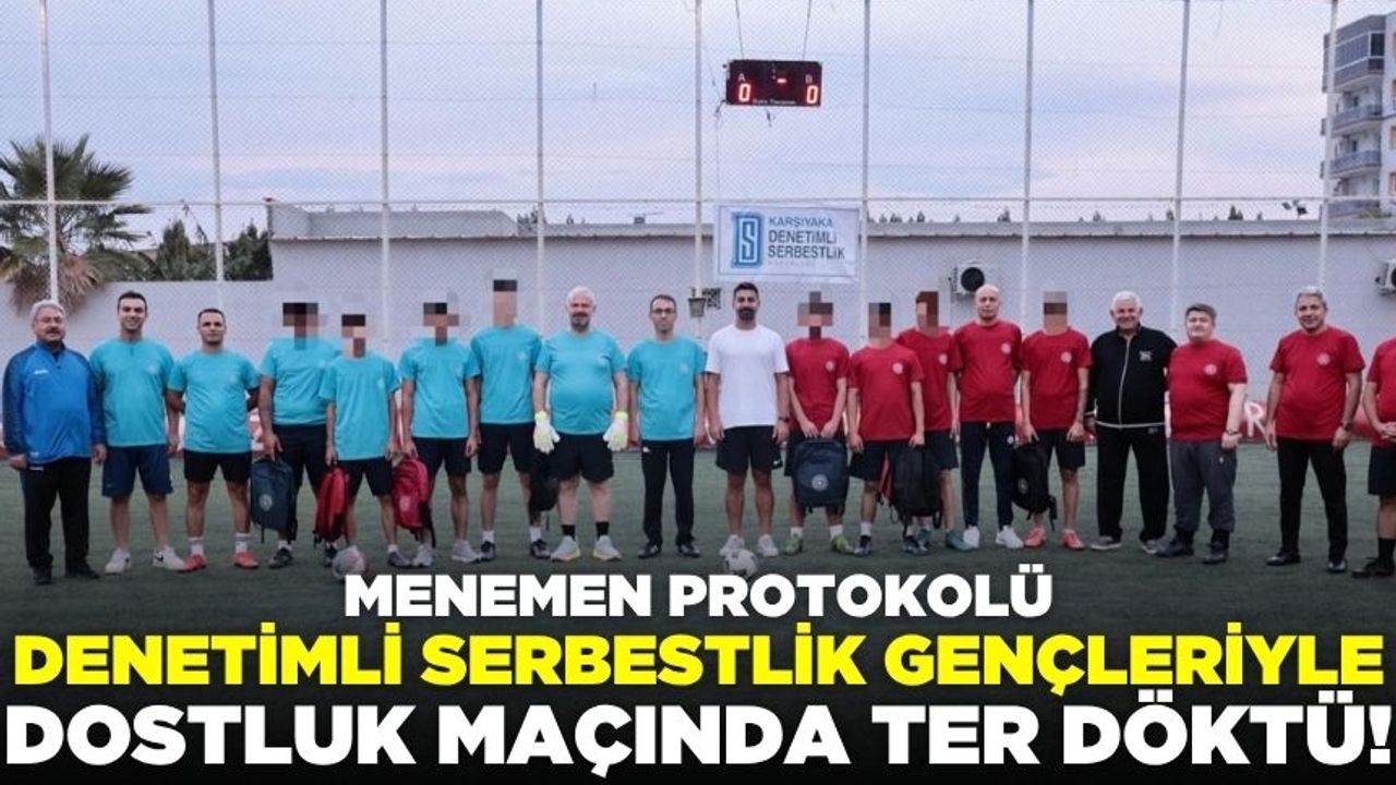 İzmir Denetimli Serbestlik Müdürlüğü Çocuk Hizmetleri Bürosu tarafından denetim ve takibi yapılan 14-18 yaş arası gençler ile Menemen ilçe protokolü sahada karşı karşıya geldi. Menemen Kaymakamlığı koordinesinde Menemen Gençlik ve Spor İlçe Müdürlüğü ile Karşıyaka Denetimli Serbestlik Müdürlüğü iş birliğinde düzenlenen futbol müsabakasında, Denetimli Serbestlik Müdürlüğü Çocuk Hizmetleri Bürosu tarafından denetim ve takibi yapılan 14-18 yaş arası gençler ile Menemen ilçe protokolü mücadele etti.