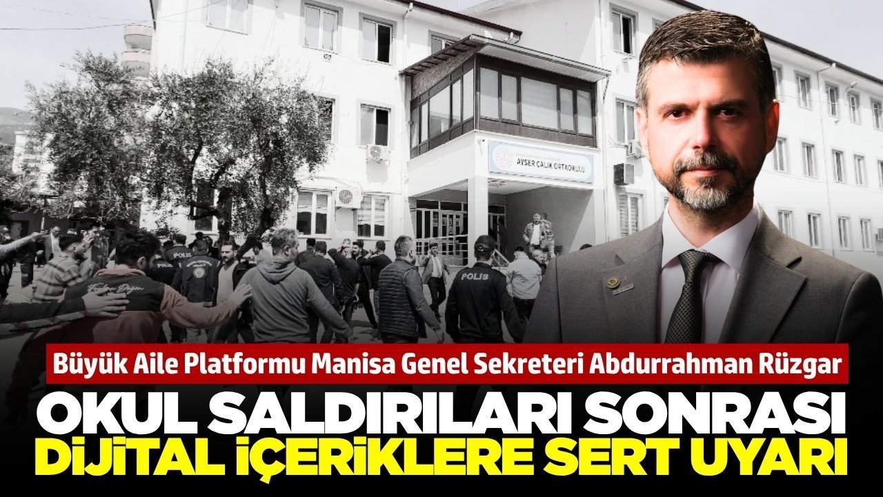 Abdurrahman Rüzgar, "Aziz milletimiz, Şanlıurfa Siverek ve Kahramanmaraş’ta okullarımızda meydana gelen silahlı saldırılar hepimizin yüreğini dağlamıştır. Saldırılar da kaybettiğimiz evlatlarımıza ve öğretmenlerimize Allah’tan rahmet, yaralılarımıza acil şifalar diliyoruz. Acılı ailelerimizin, öğrencilerimizin, öğretmenlerimizin ve eğitim camiamızın kederini yürekten paylaşıyoruz. Bir gün arayla iki ayrı şehirde okulların hedef alınması, meselenin artık münferit bir hadise gibi ele alınamayacağını açıkça göstermektedir. Büyük Aile Platformu; “Nesil Meselesi”, “Evlat Nöbetleri” ve “Ekranların Emzirdiği Çocuklar” başlıklarıyla 50’ye yakın ilde yaptığı konferanslarla anne-babaların dikkatini dijital çağın risklerine çekmişti. Bugün üzülerek görüyoruz ki dikkat çekilmeye çalışılan tehlikeler artık okulların kapısına dayanmıştır, canlarımıza kastetmektedir.