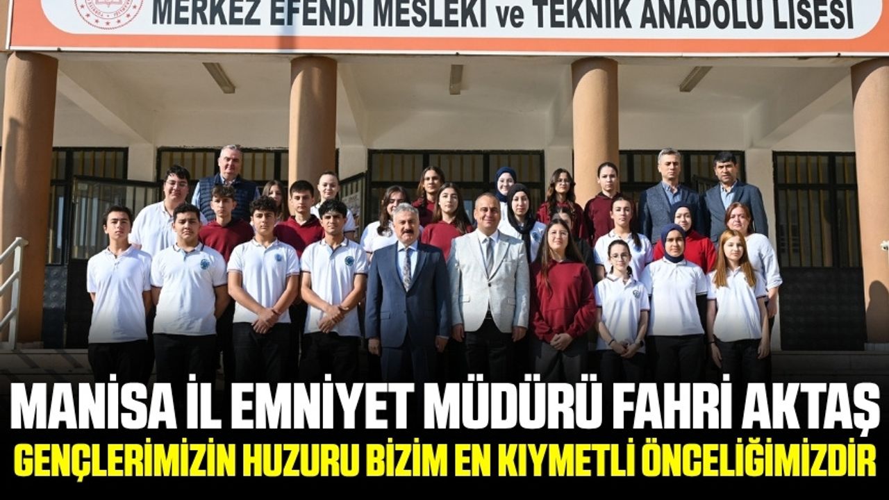 Manisa İl Emniyet Müdürlüğü’nün “Bilinçli Gençlik, Güvenli Geleceğimizin Teminatı” sloganıyla yürüttüğü faaliyetler çerçevesinde Müdür Aktaş, Merkez Efendi Mesleki ve Teknik Anadolu Lisesi ile TOKİ Mesleki ve Teknik Anadolu Lisesini ziyaret etti.