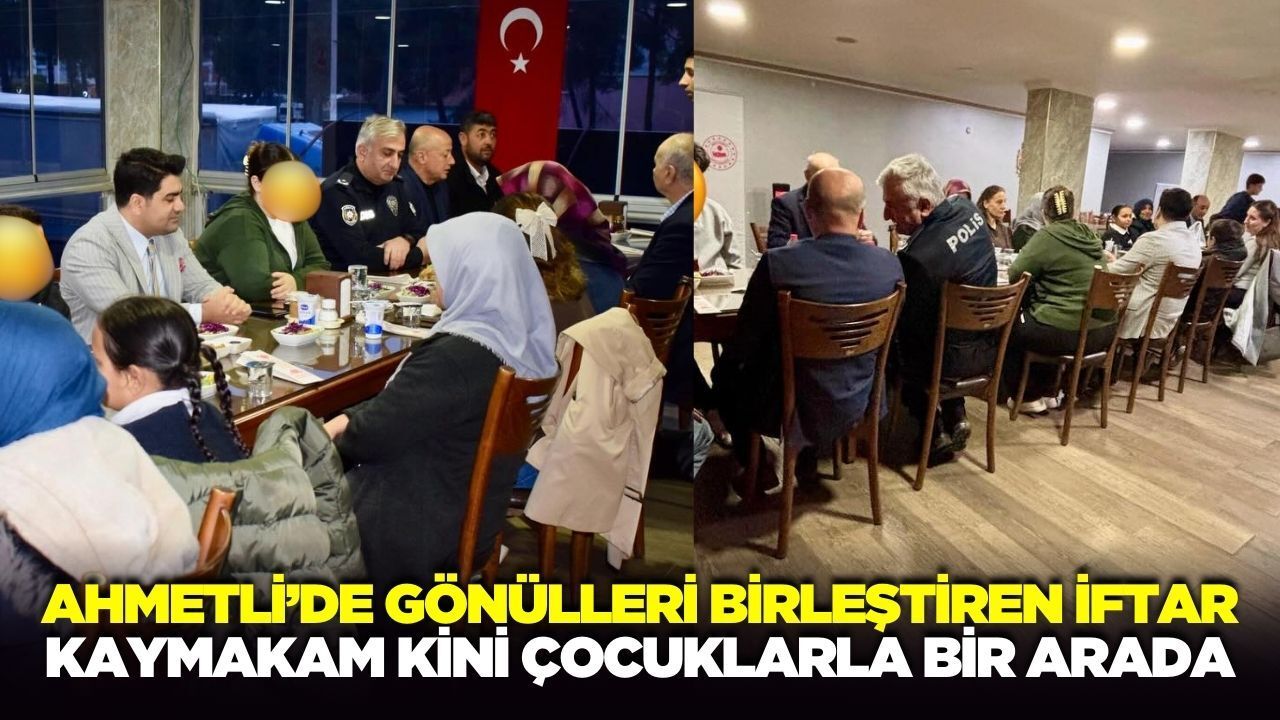 Ahmetli Kaykamlığı tarafından yapılan açıklamada, "Kaymakamımız Sayın Mehmet Kaan Kini, ilgili kurum amirlerimiz ile birlikte koruma ve destek altında bulunan sevgili çocuklarımız için düzenlenen iftar programında çocuklarımız ve kıymetli aileleriyle bir araya geldi. Ramazan ayının birlik ve dayanışma ruhunun hissedildiği programda aynı sofrayı paylaşmanın mutluluğu yaşandı. Sıcak bir ortamda geçen iftar programı, yapılan ikramlar ve çekilen hatıra fotoğraflarıyla sona erdi" dendi.