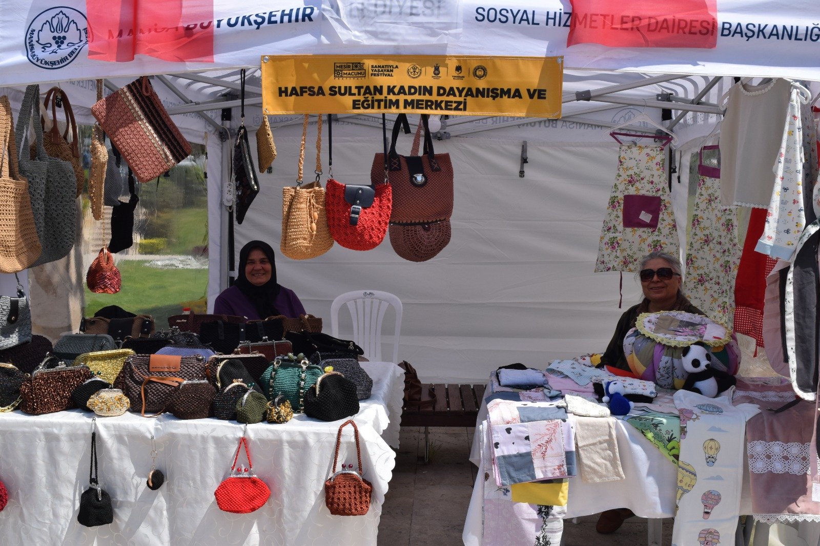 Manisa Büyükşehir Belediyesi bünyesindeki Kadın Dayanışma ve Eğitim Merkezleri (MABEM), kursiyerlerin yıl boyunca hazırladığı el emeği ürünleri Hatuniye Camii meydanında vatandaşlarla buluştu.