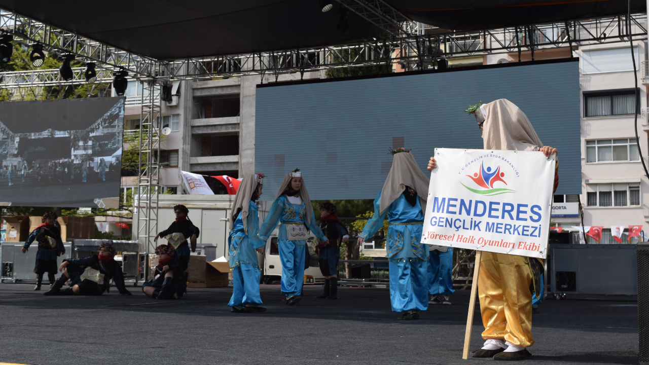 Menderes Gençlik Merkezi Yöresel Halk Oyunları Ekibi bünyesinde eğitim alan çocuklardan oluşan grup, hazırladıkları özel koreografi ile izleyicilerin karşısına çıktı. Türkiye’nin zengin kültürünü yansıtan yöresel oyunları büyük bir başarıyla sergileyen minikler, izleyenlerden tam not aldı.