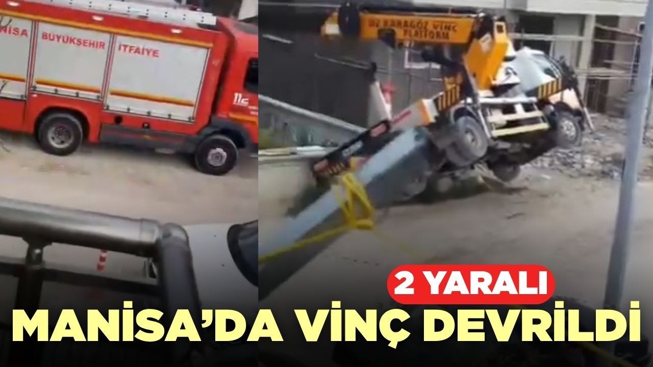 Bir inşaat alanında çalışma yapıldığı sırada devrilen vinç, paniğe neden olurken olayda 2 kişi yaralandı.