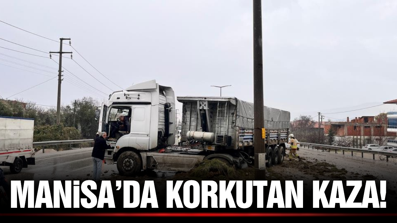 Uşak'tan İzmir istikametine seyir halinde olan Şahin Madanoğlu idaresindeki 64 LF 243 plakalı tır, İzmir-Ankara D300 karayolu Kavacık Rampaları mevkisinde yağışın etkisiyle kayganlaşan yolda kontrolden çıktı. Sürücüsünün direksiyon hakimiyetini kaybettiği tır, orta refüje çıkarak durabildi.