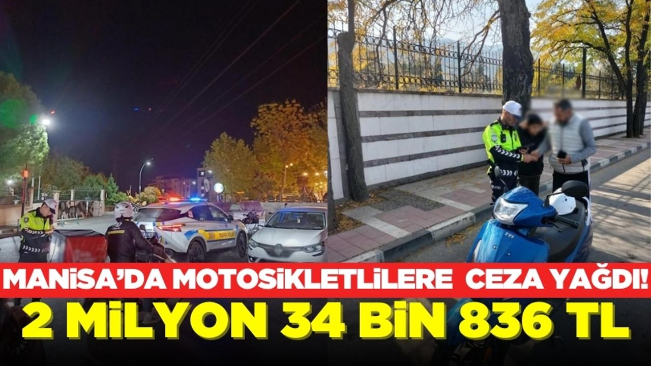Manisa İl Emniyet Müdürlüğü Trafik Denetleme Şube Müdürlüğü ve ilçe trafik birimleri tarafından 02-03 Kasım tarihleri arasında 25 ekip 44 personel ile gerçekleştirilen 'Motosiklet ve Motorlu Bisiklet Denetimi' sonucunda; 2 bin 471 araç ve sürücüsü kontrol edildiği, kusurlu görülen 752 araç ve sürücüsüne 2 milyon 34 bin 836 TL idari para cezası uygulandığı bildirildi.
