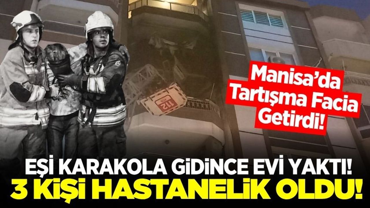 Manisa'nın Şehzadeler ilçesinde, eşiyle tartıştığı iddia edilen bir kişi, eşinin şikayetçi olmak için karakola gitmesinin ardından kendini odaya kilitleyip evini yaktı. Olayda, evi yakan şahıs ile dumandan etkilenen iki komşusu hastaneye kaldırıldı.