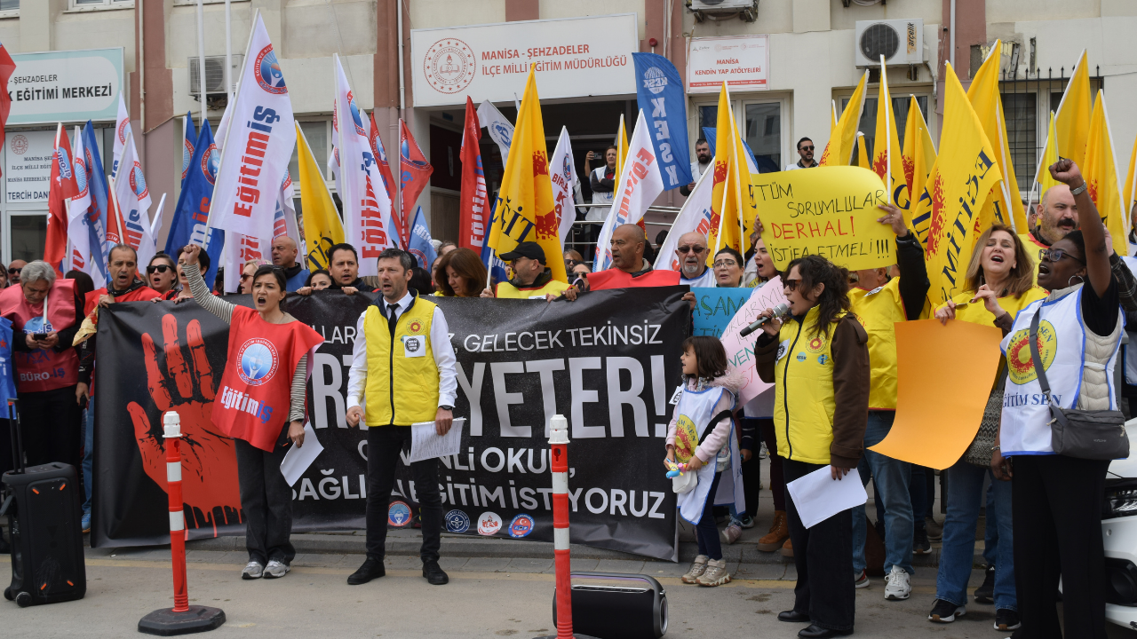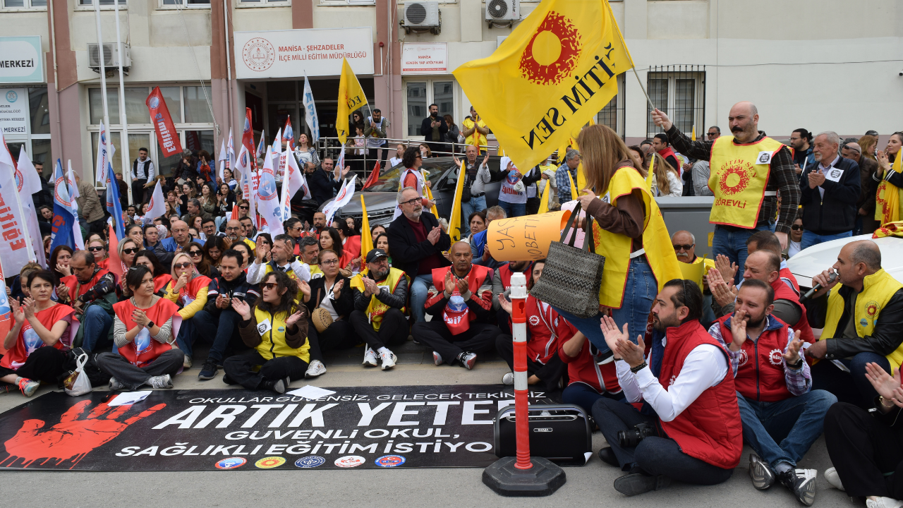 14 Nisan’da Şanlıurfa Siverek’te yaşanan saldırının ardından, dün Kahramanmaraş Ayser Çalık Ortaokulu’nda meydana gelen ve 8 öğrenci ile 1 öğretmenin hayatını kaybettiği vahşet, sabırları taşırdı. Manisa'da eğitim emekçileri "Şiddeti normalleştirmeyeceğiz" mesajı vererek oturma eylemi yaptı.