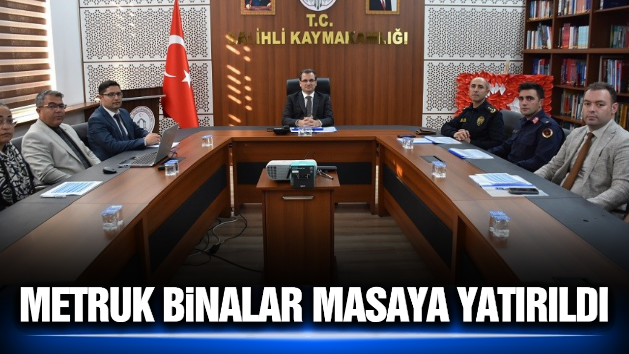 Salihli Kaymakamı Ali Güldoğan başkanlığında düzenlenen Metruk Binalar Toplantısı'nda, kamu düzenini, vatandaşların can ve mal güvenliğini, çevre ile görüntü kirliliğini ortadan kaldırmaya yönelik tedbirler ele alındı. Toplantıda, ilçe çapında tehlike oluşturan, terk edilmiş ve görsel kirliliğe yol açan binalarla ilgili devam eden faaliyetler detaylıca incelendi.