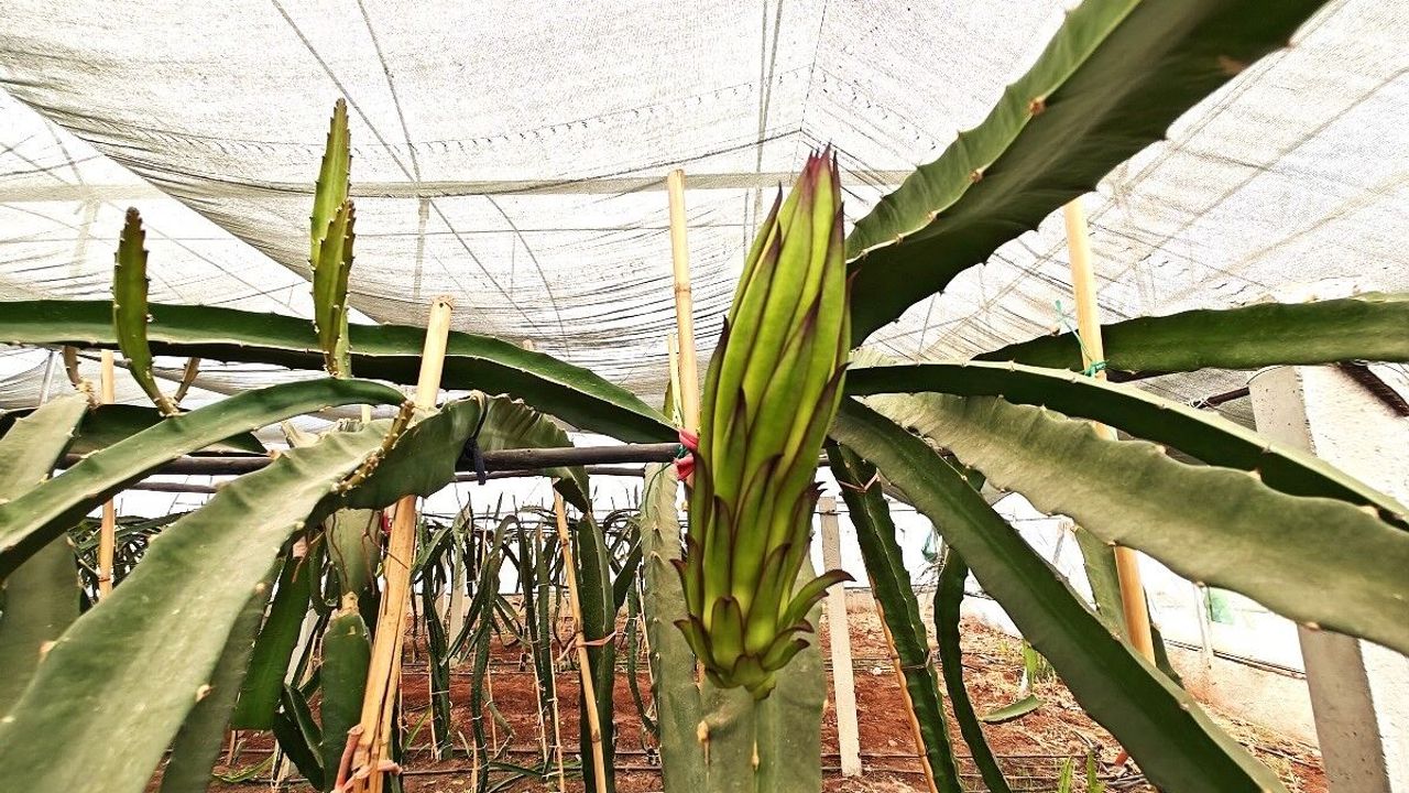 Daha önce ıslah edilmiş yerli çeşit biber, hıyar ve patlıcan üretiminde yakaladığı yüksek rekolteyi, alternatif ürünlerde de elde etmek için araştırma-geliştirme çalışmalarının devam ettiği Eyyübiye Sera Kent’te, 17 ay önce ekilen ejder meyvesi çelikleri meyve verme aşamasına geldi.