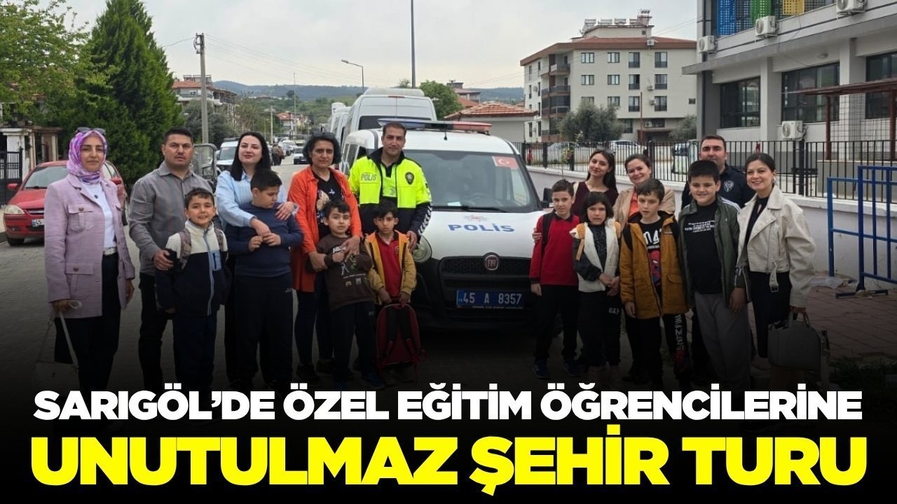 Manisa’nın Sarıgöl ilçesinde görev yapan polisler, özel eğitim öğrencilerine araçlarla şehir turu attırarak yüzlerde tebessüm oluşturdu. Etkinlik boyunca büyük mutluluk yaşayan öğrencilerin sevinci ise adeta yüzlerinden okundu.