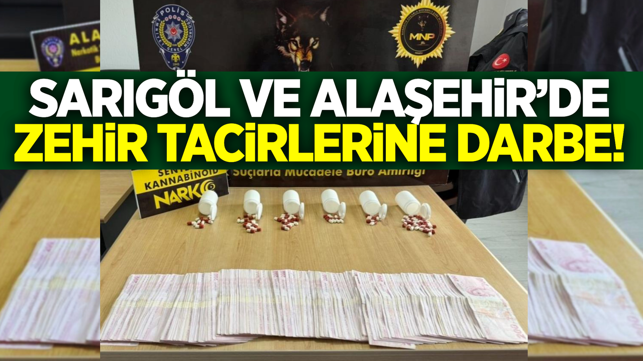 Sarıgöl ilçesini de kapsayan çalışma doğrultusunda adreslerde yapılan aramalarda; 90 adet sentetik ecza, Uyuşturucu madde ticaretinden elde edildiği değerlendirilen 50 bin TL ele geçirildi.