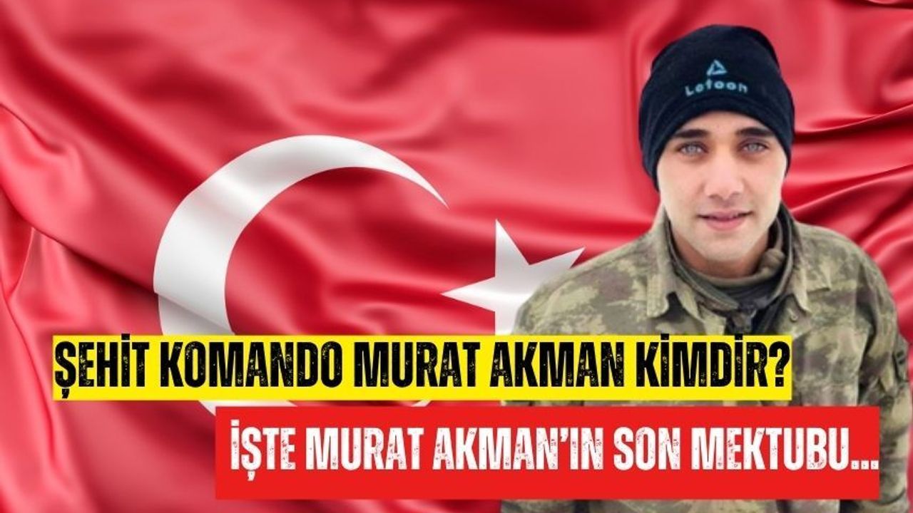 İçimizi yaralayan şehitlerimizden bilgiler gelmeye devam ediyor. Şehit Murat Akman'ın Türkiye'ye yazdığı son mektubu herkesi hüzüne boğdu. Şehidimiz Murat Akman'ın zorlu hayatı ve aziz şehidimizin son mektubu...