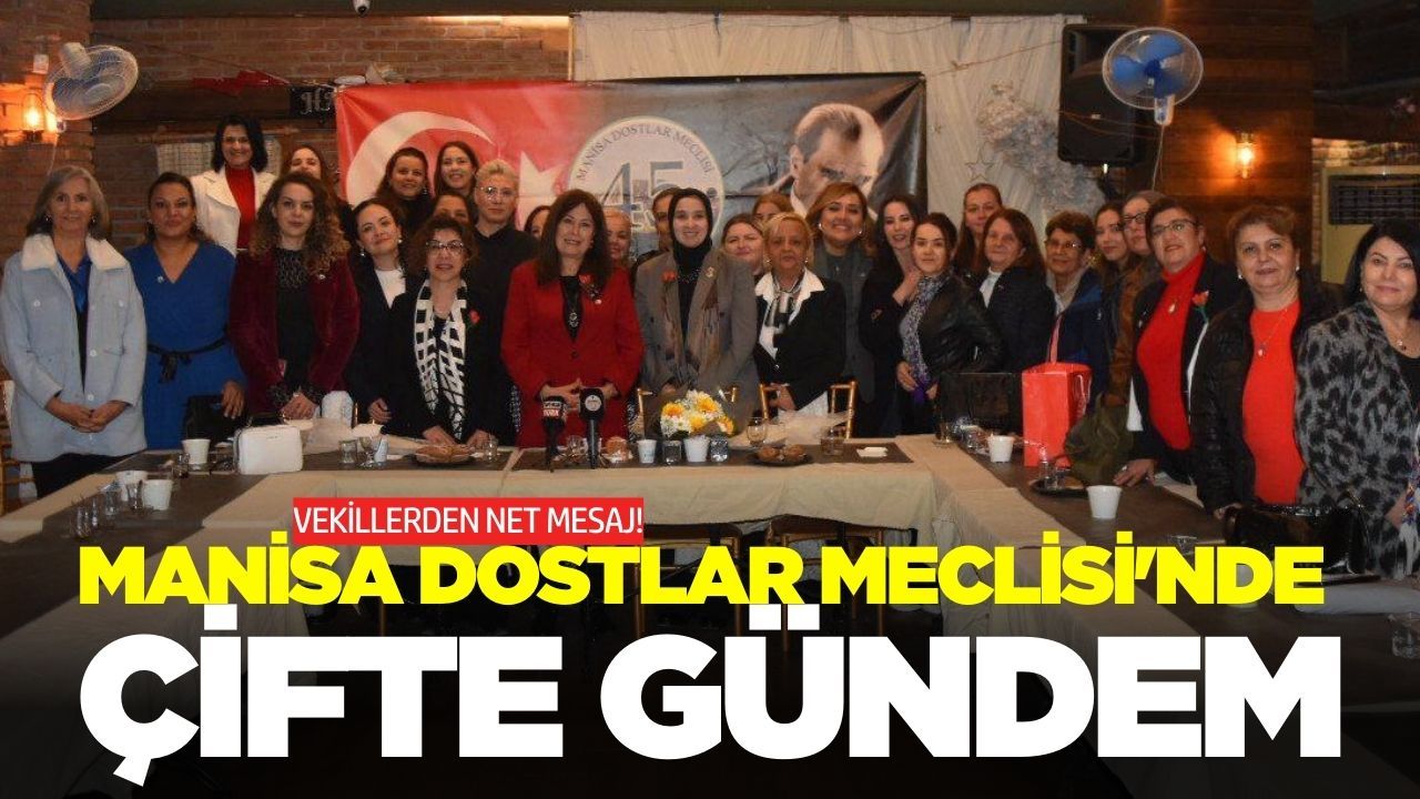 Manisa Dostlar Meclisi'nin bu haftaki konukları arasında İYİ Parti Manisa Milletvekili Şenol Sunat, DEVA Partisi Genel Başkan Yardımcısı ve İstanbul Milletvekili Elif Esen, 25. ve 26. Dönem CHP Manisa Milletvekili Tur Yıldız Biçer yer aldı.