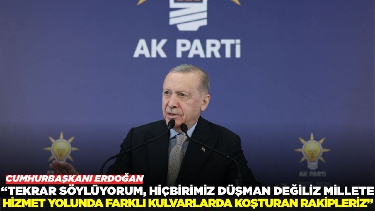 Erdoğan, siyaset arenasında rekabet halinde olmalarının ülkenin ve milletin hayrına olan meselelerde ayrışacakları anlamına gelmeyeceğini dile getirerek, şu ifadeleri kullandı: "Elbette yarışacağız, demokratik zeminde kıyasıya mücadele edeceğiz, birbirimizi kimi zaman en sert ifadelerle eleştireceğiz ama bunları yaparken siyasetin tabiatında mündemiç olan müzakere, diyalog ve uzlaşı kültürünü tamamen rafa kaldırmayacağız. Siyaseti dost-düşman kavramlarıyla tarif etmek doğru değildir.