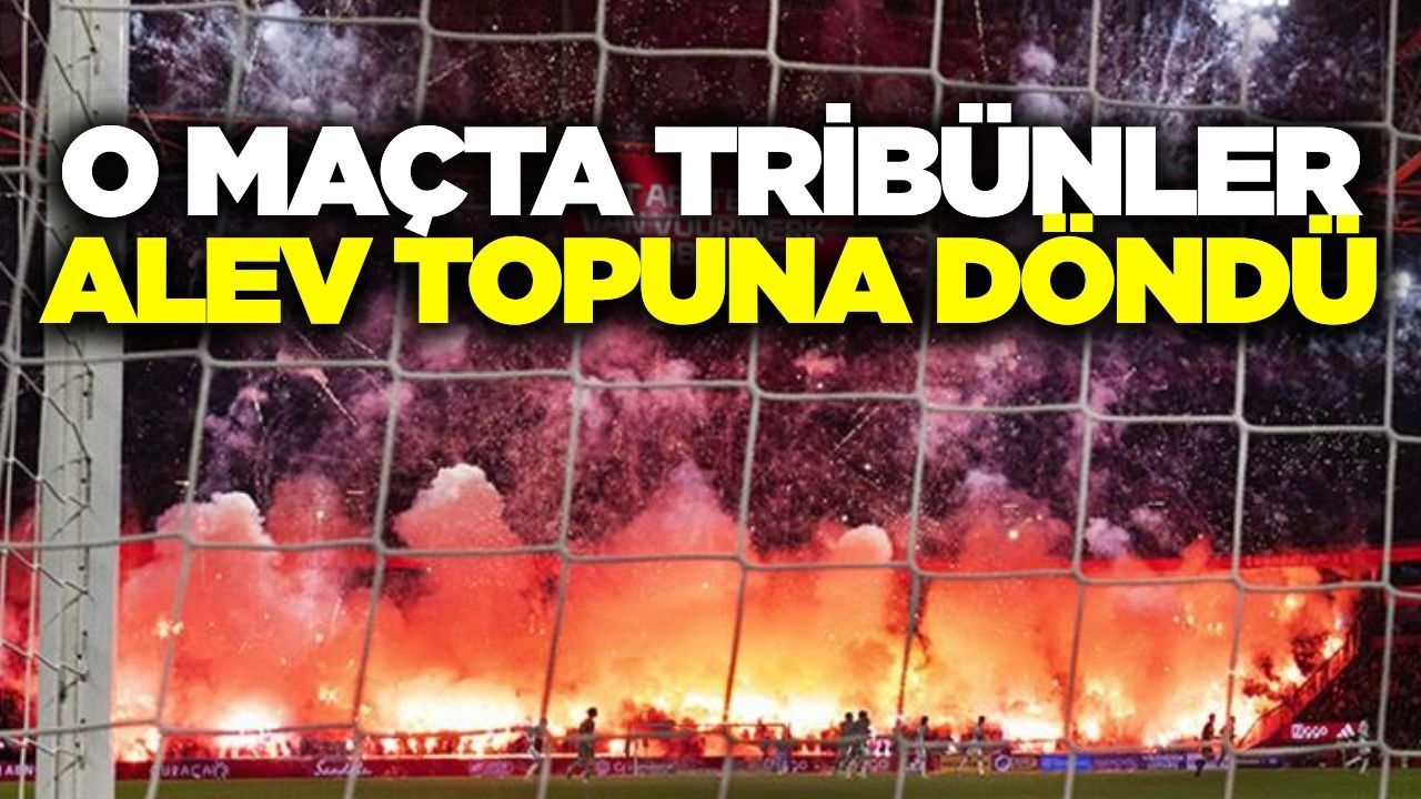 Johan Cruyff Arena’da oynanan mücadele, Ajax taraftarlarının vefat eden arkadaşlarını anmak amacıyla maçın ilk dakikalarında sahaya çok sayıda yanıcı madde atmasıyla durduruldu.